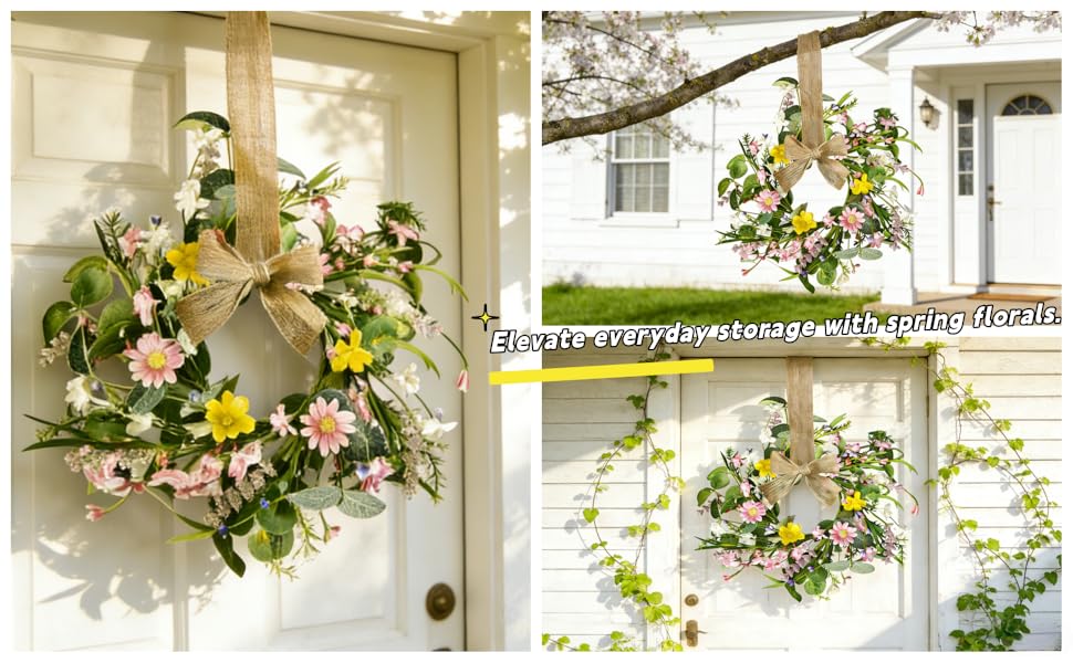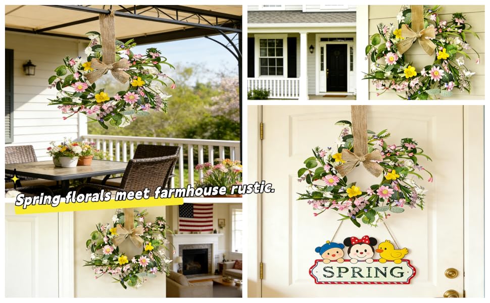 • 🏡 ديكور ربيعي متعدد الاستخدامات: يمكنك تعليقه بسهولة على الباب الأمامي أو الجدران الداخلية أو رف الموقد، أو ببساطة عرضه على طاولة وحدة التحكم أو كجزء من صورة موسمية مبهجة - مثالية للاستخدام الداخلي والخارجي.