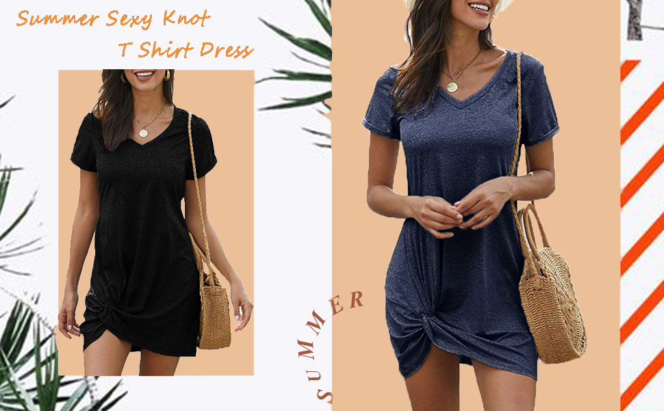 • Sexy v-neck dresses with cute twist knot are very stylish and versatile. Loose t shirt dress style with simple design, is perfect for daily wear and never out of style. An essential for every fashion women or girl!