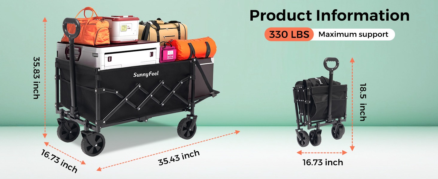 【قماش أكسفورد سميك 600D وقابل للفصل】تم تصميم عربة SunnyFeel للتعامل مع الأحمال الثقيلة دون عناء بفضل تصميمها الداخلي الواسع وسعة الوزن الرائعة. تتميز بإطار فولاذي عالي القوة وقماش أكسفورد متين مزدوج الطبقة 600D، تدعم عربة التخييم القابلة للطي هذه ما يصل إلى 330 رطلًا والنسيج قابل للفصل، مما يسهل التخزين والتنظيف.