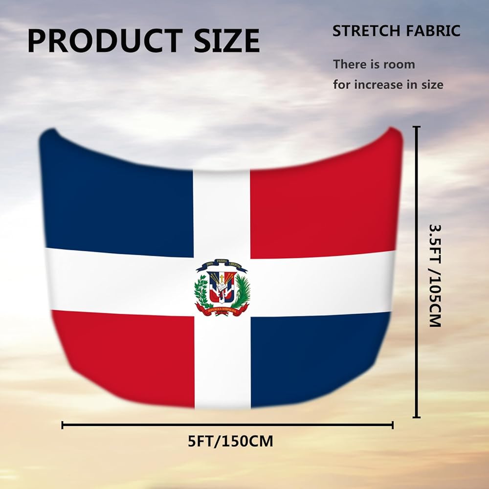 غطاء غطاء السيارة بعلم الدومينيكان مقاس 4 × 5 أقدام، لافتة غطاء محرك السيارة، بوليستر مرن قابل للتمدد، ملاءمة عالمية، أغطية غطاء محرك السيارة الوطنية، هدايا الوطنية الدومينيكية