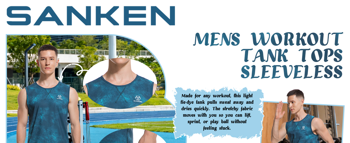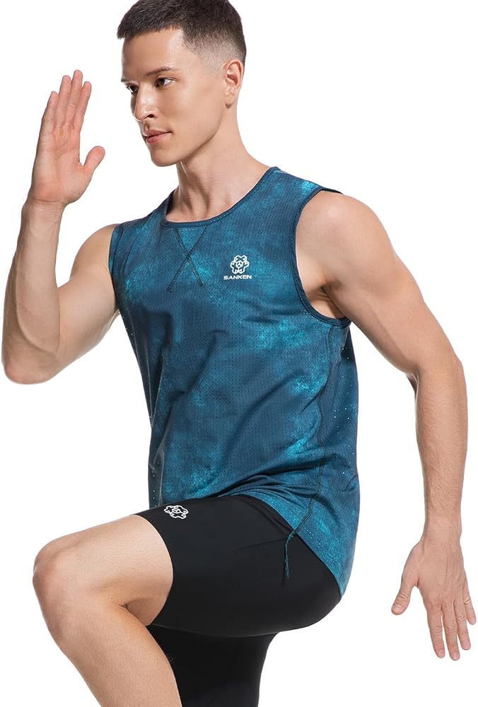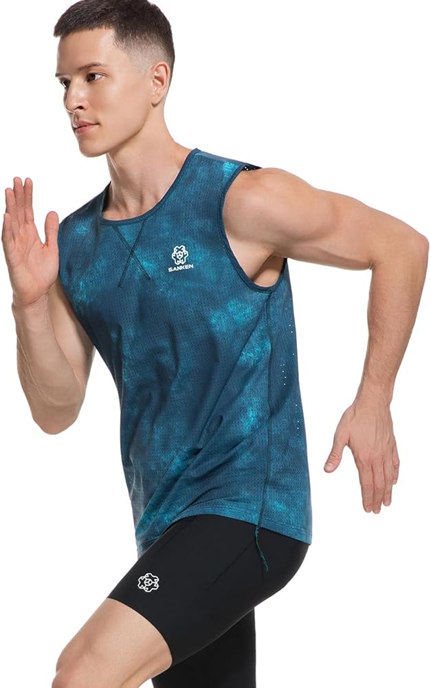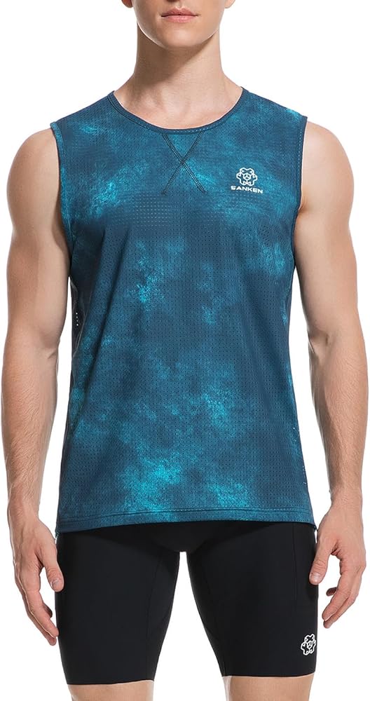 Elevate your workout wardrobe with this Sanken athletic tank top featuring a mesmerizing gradient blue tie-dye pattern. The lightweight, quick-dry fabric keeps you comfortable during intense training, while the chafe-free athletic cut prevents irritation. Designed for running, gym workouts, marathon training, or casual wear, its performance mesh construction enhances airflow and moisture-wicking technology ensures dryness during high-intensity activities. The athletic fit combines flexible movement with a stylish silhouette, and the durable, wash-resistant fabric makes it a trusted companion for all your workouts. Whether you're on the track, lifting weights, or exploring the outdoors, this tank delivers both functionality and standout style.