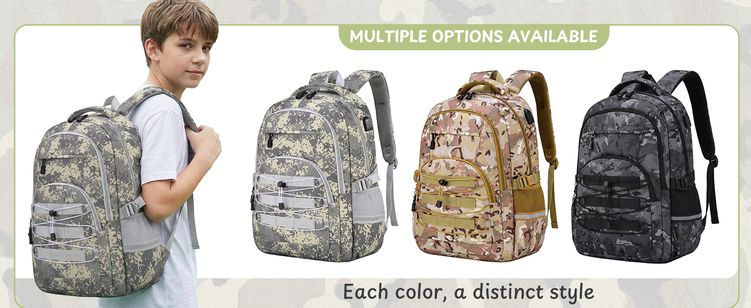 【وظيفة مموهة أنيقة ومتعددة الاستخدامات】تنتقل حقيبة الظهر المموهة متعددة الاستخدامات هذه بسلاسة لأي مغامرة! يتيح لك حزام MOLLE الأمامي إمكانية التخصيص باستخدام الحقائب المموهة ومعدات التسلق والمزيد. سواء كنت متجهًا إلى المدرسة، أو مسافرًا، أو تتنزه سيرًا على الأقدام، فإن حقائب الظهر المخصصة للأولاد تتكيف مع احتياجاتك. بالإضافة إلى ذلك، فهو هدية رائعة لموسم العودة إلى المدرسة أو العطلات أو أعياد الميلاد!
