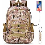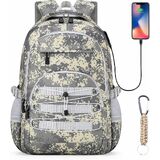 【حقيبة ظهر بمنفذ USB】مصممة بمنفذ شحن USB خارجي وكابل داخلي، تدعم حقيبة الظهر المموهة هذه الشحن السريع والسهل للهواتف المحمولة والأجهزة اللوحية وغيرها من الأجهزة الإلكترونية الصغيرة أثناء التنقل.