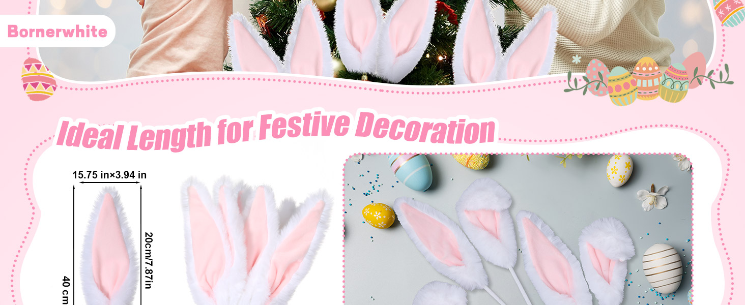 مجموعة آذان الأرنب: تأتي زينة عيد الفصح مع 10 قطع في مجموعة واحدة. يبلغ الطول الإجمالي لكل معول 40 سم - جزء الأذن 20 سم وعصا الإدخال 20 سم. مثالية لتزيين شجرة عيد الفصح، هذه المجموعة تجعل إعداد عيد الفصح الخاص بك مميزًا وتضفي أجواء احتفالية مفعمة بالحيوية على الاحتفالات