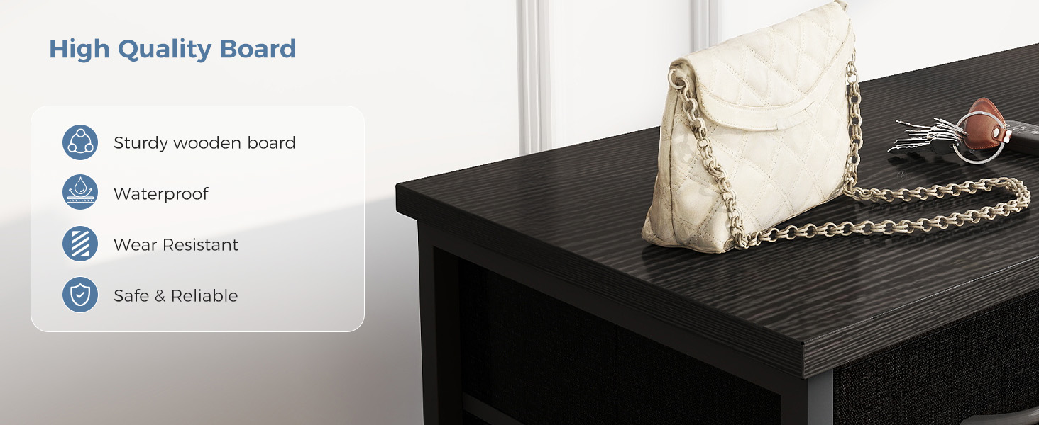 أدراج قماشية ناعمة وآمنة: تنزلق أدراج القماش بسلاسة على قضبان متينة، مما يوفر سهولة الوصول إلى محتوياتك. يحافظ تصميمها الآمن على العناصر في مكانها، مما يجعل طاولة الطابعة الخاصة بك تحتوي على مساحة تخزين منظمة وعملية للغاية.