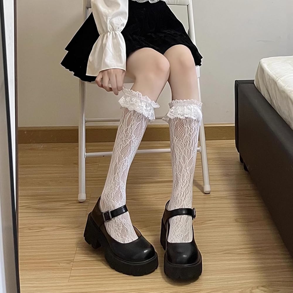 مناسب لمعظم الأشخاص: جورب لوليتا الشبكي المثير المزخرف بالدانتيل متوسط الحجم، مناسب للنساء بمقاس أمريكي 5-11، مع مرونة جيدة، يمكنك تمديده للوصول إلى الطول المطلوب، ويمكن أن يناسب قدميك تمامًا ولن يشعر بالضيق حتى بعد ارتدائه لفترة طويلة.