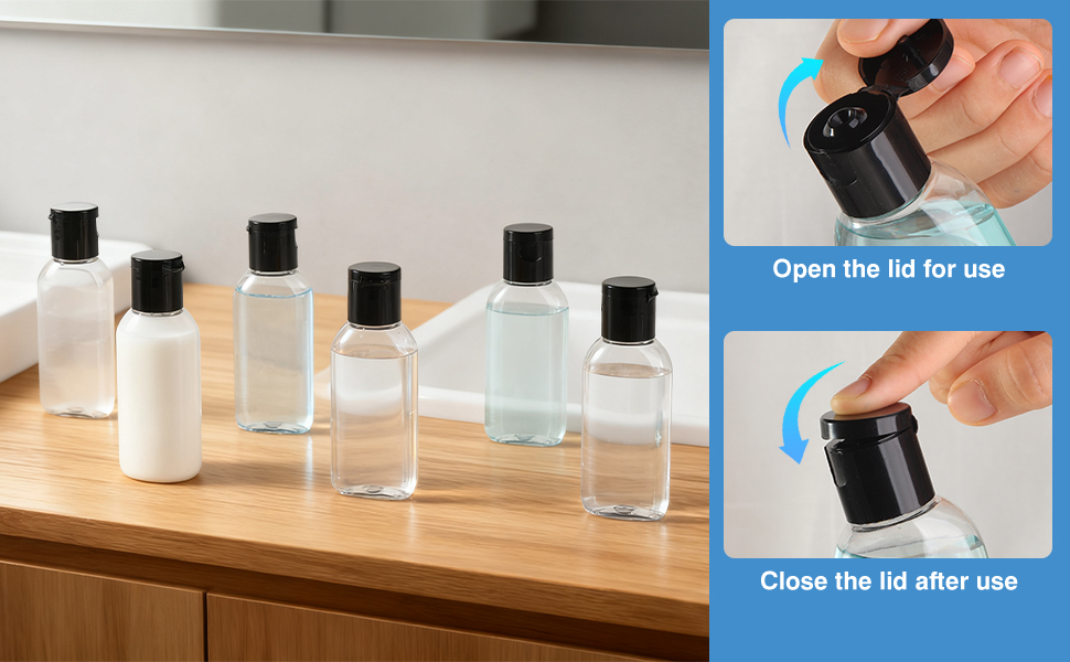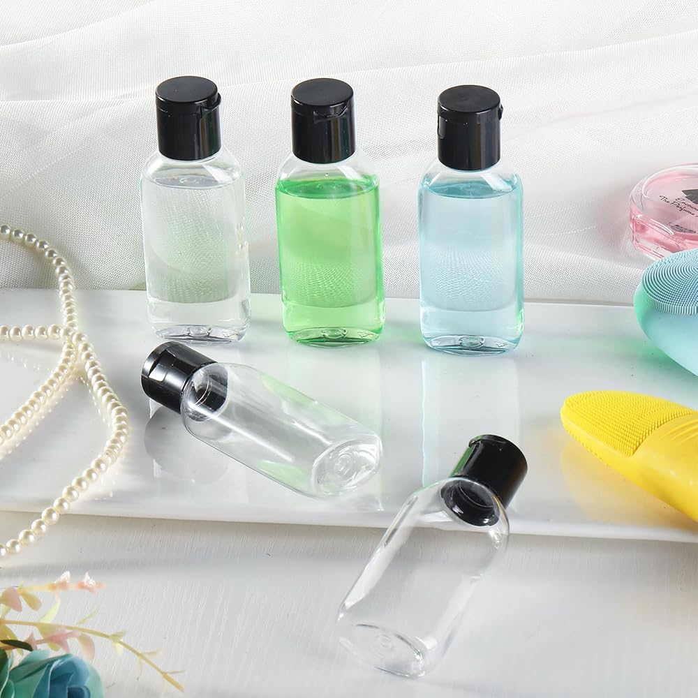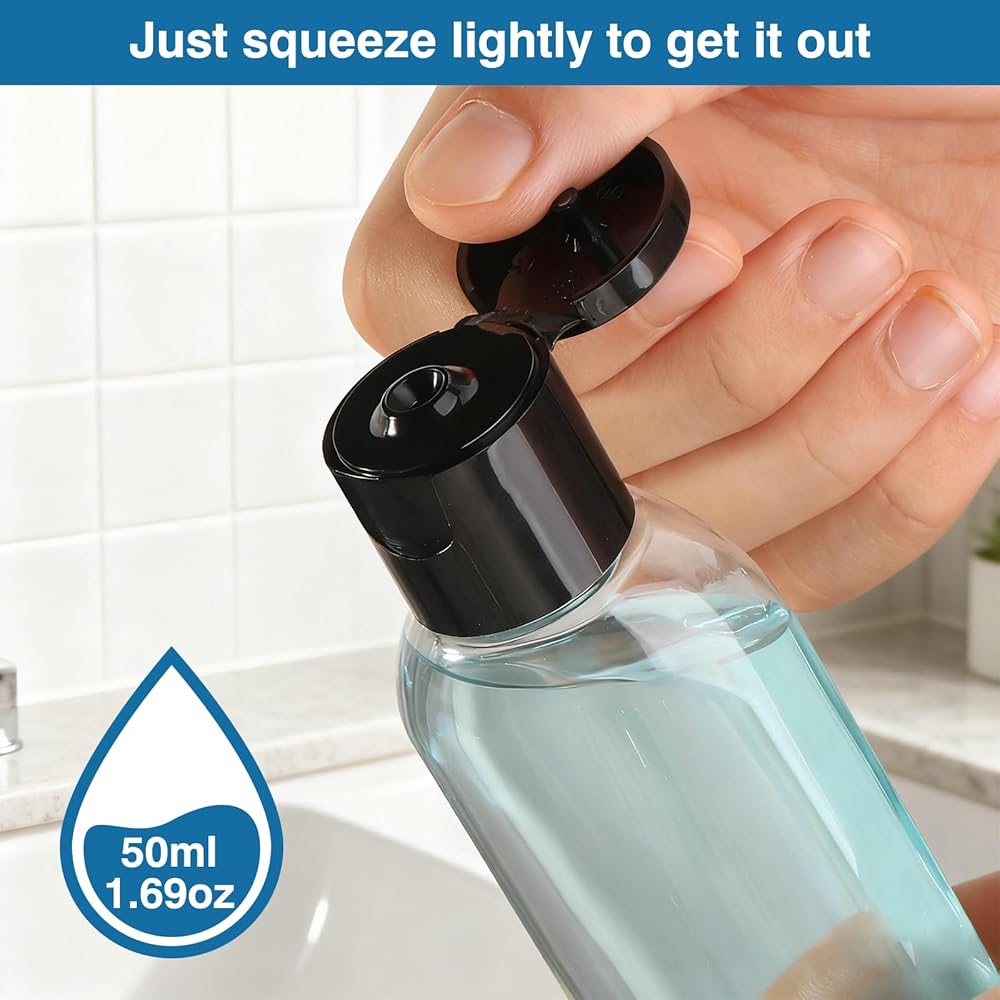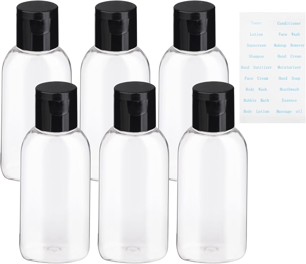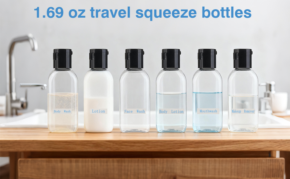 زجاجات السفر لمستحضرات التجميل، حاويات الضغط الفارغة الخالية من مادة BPA، 6 عبوات من زجاجات الضغط القابلة لإعادة الملء بوزن 1.69 أونصة، حاويات شامبو بلاستيكية صغيرة مقاومة للتسرب مع ملصقات