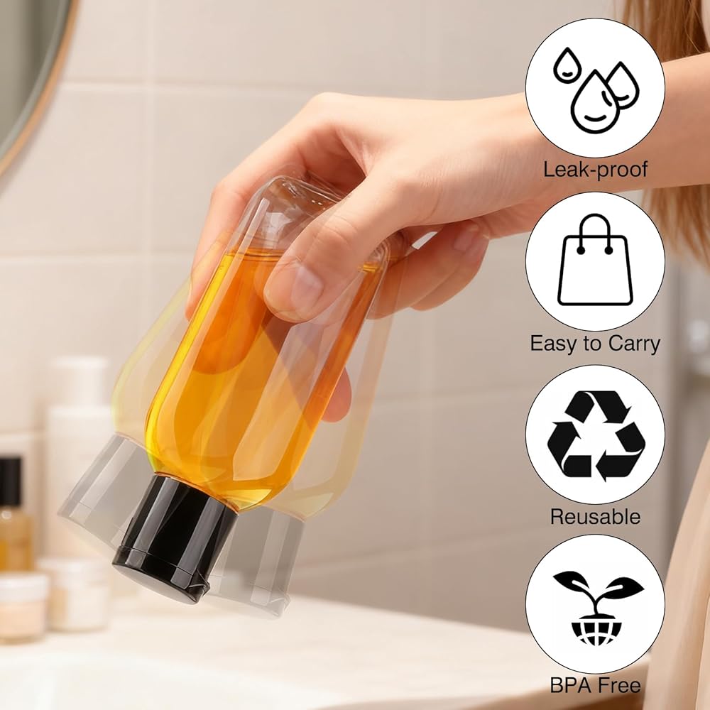 مقاومة للتسرب: تتميز زجاجات السفر بتصميم فم الزجاجة الملولب لسهولة الفتح، وتمنع التسربات حتى عند قلبها رأسًا على عقب