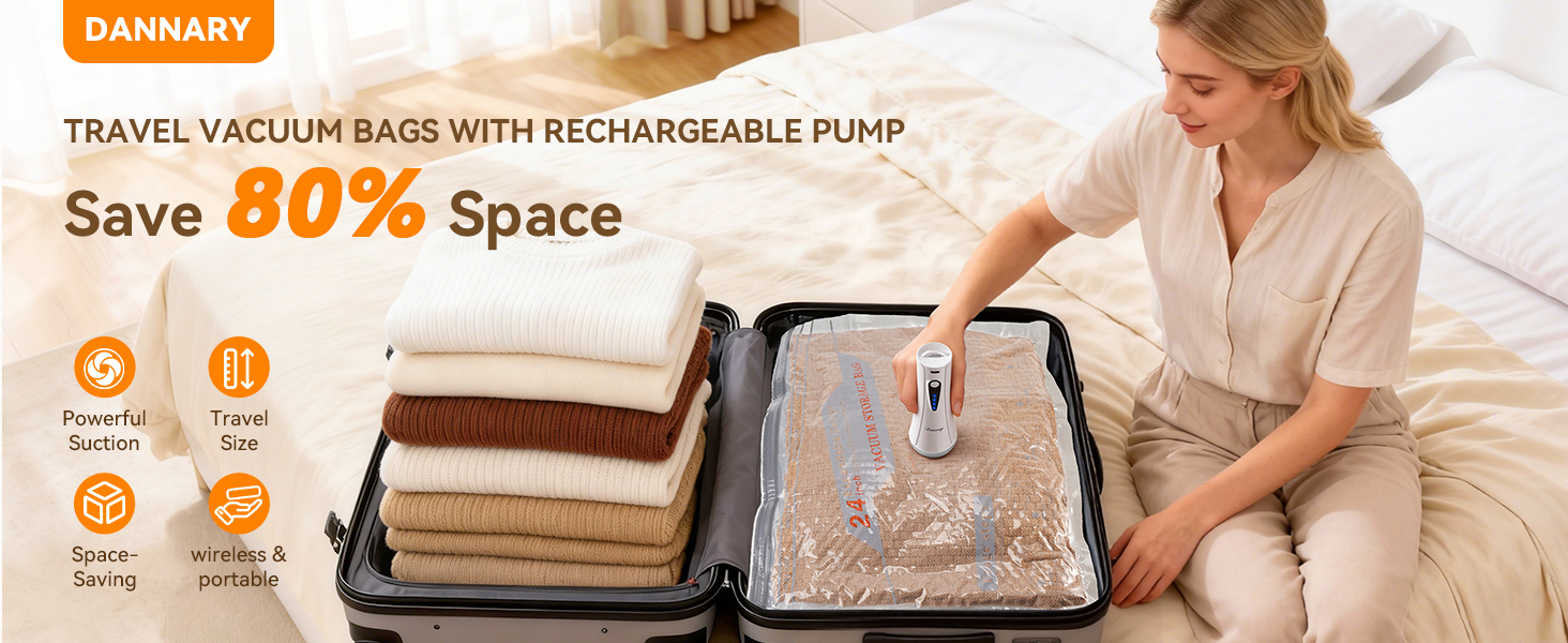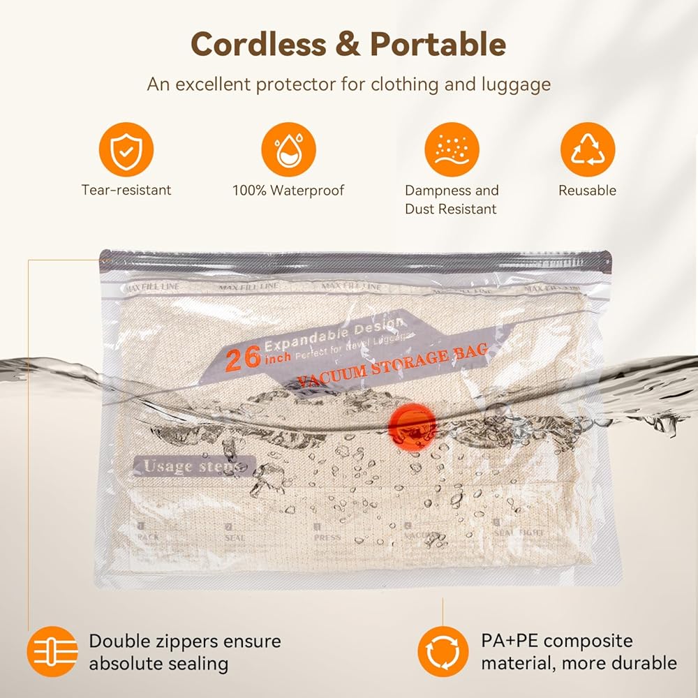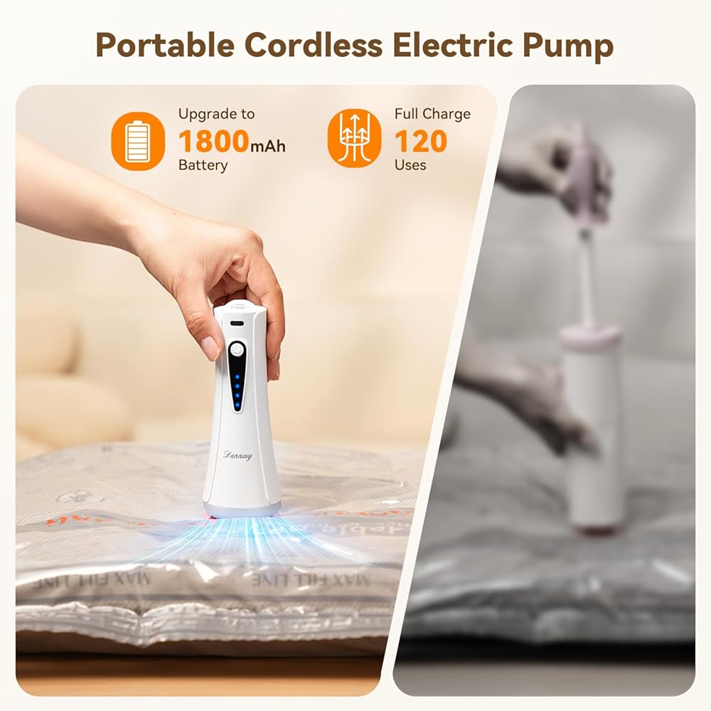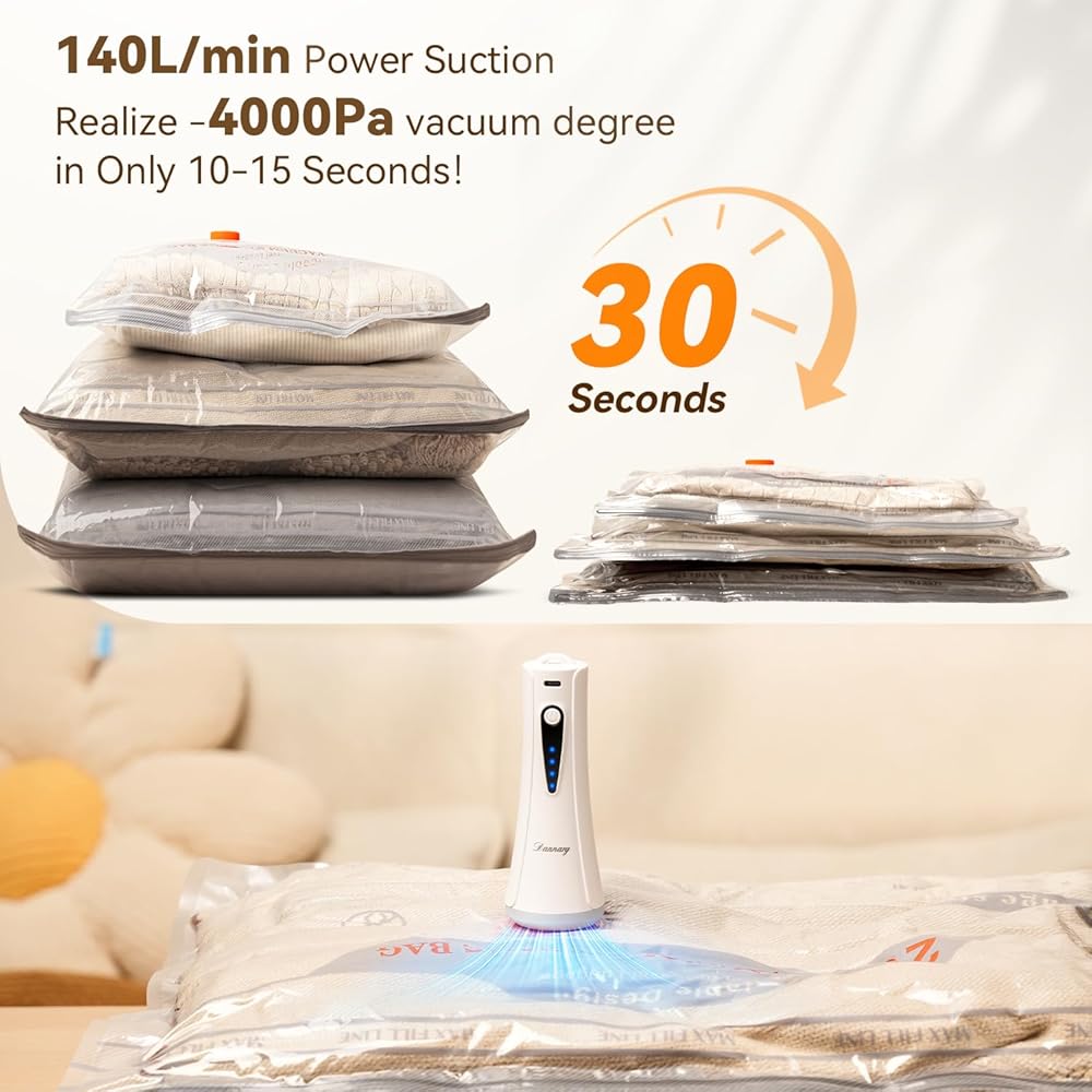 【ضغط سريع وفعال】: احصل على مكنسة كهربائية -4000 باسكال مع تدفق هواء 140 لتر/الدقيقة. قم بضغط الأكياس خلال 15-30 ثانية وتعبئتها في أقل من 3 دقائق، مما يوفر لك الوقت والمساحة.