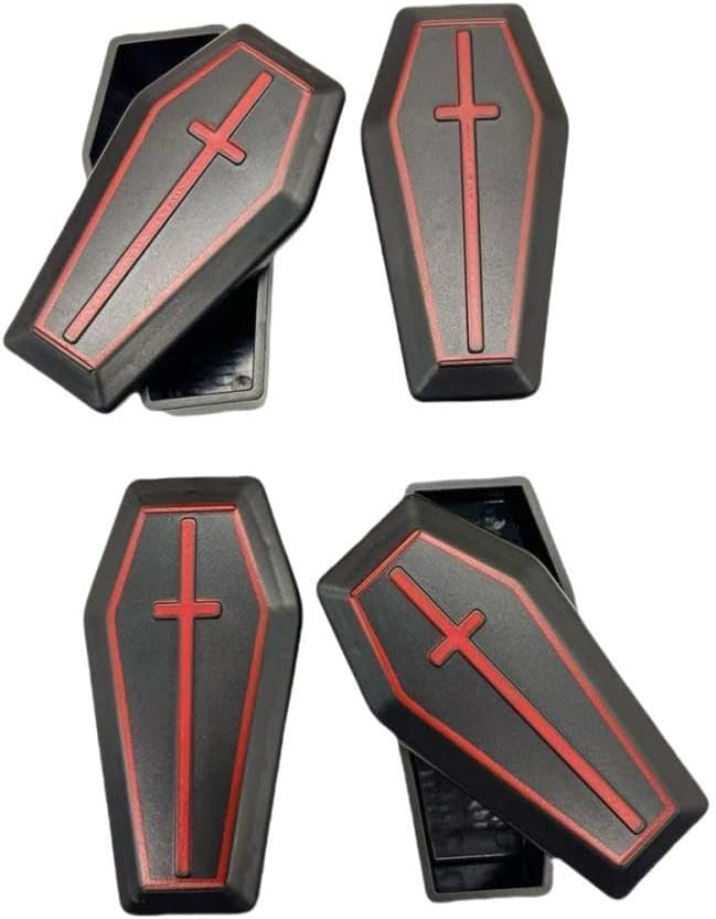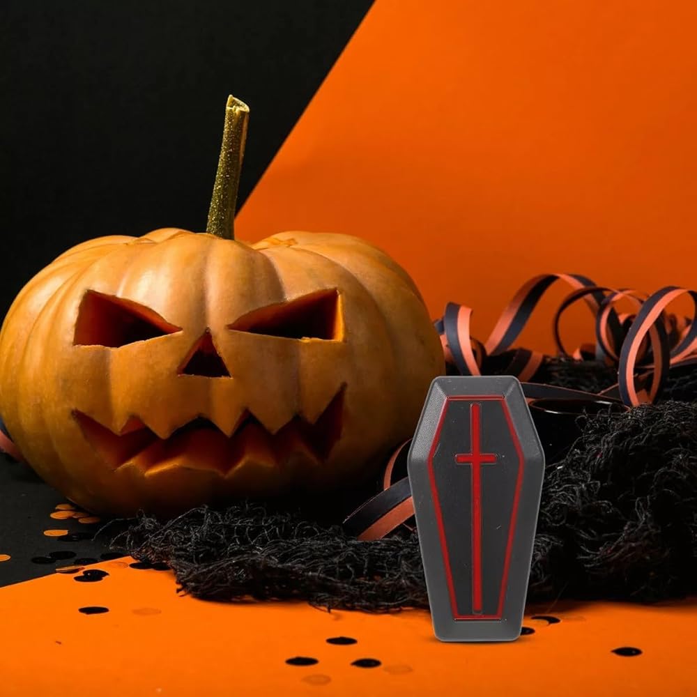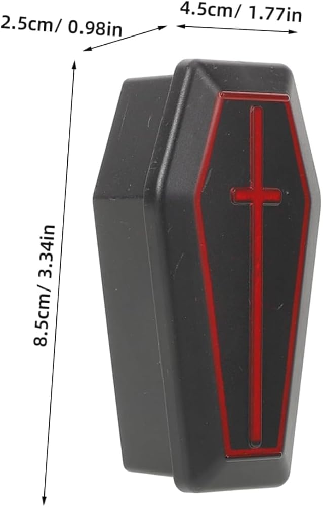• Unique Design: These coffin-shaped accessories feature a striking cross design with contrasting red accents for a bold, gothic-inspired look.