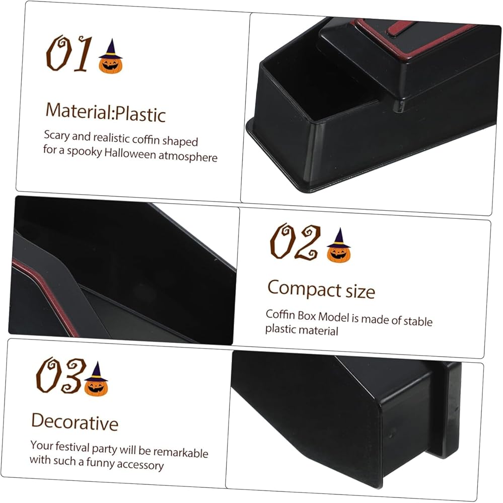 صناديق زينة على شكل نعش، مجموعة من 4 قطع، باللون الأسود مع لمسات حمراء
