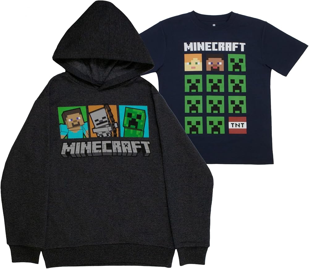 يناسب الأولاد من أي حجم: لن يكون لدى أي صبي من محبي لعبة Minecraft مجموعة سلع كاملة بدون هذه السترة ذات القلنسوة المرخصة رسميًا وحزمة التي شيرت. متوفرة بمقاسات للأولاد من 4 إلى 18، هذه السترات والقمصان ستناسب أي طفل.