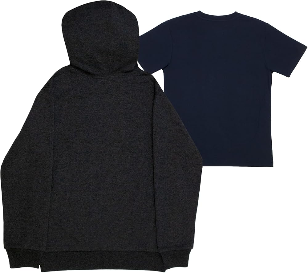 قدرة على الارتداء تدوم طويلاً: كل من السترة ذات القلنسوة والقميص مصنوعان من مزيج من القطن/البوليستر الفاخر. وهذا يعني أنها جاهزة لأي نشاط، وتوفر التهوية والراحة.