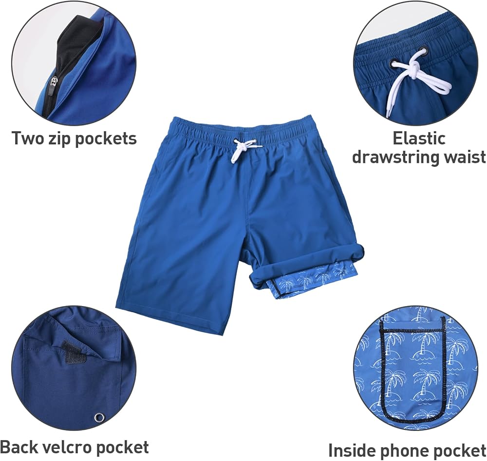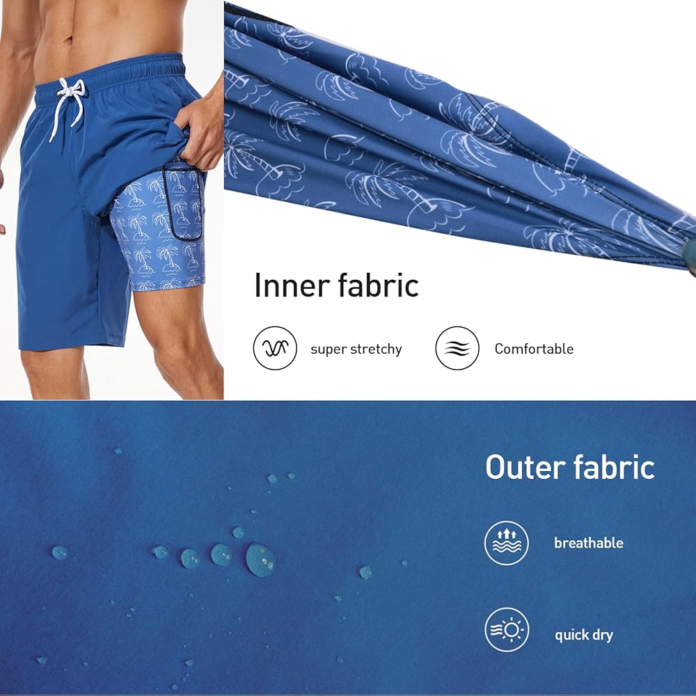 【مادة صديقة للجلد】سروال سباحة رجالي 2 في 1 مع بطانة داخلية بوكسر، جميع السراويل القصيرة مصنوعة من مواد عالية الجودة، ناعمة جدًا، مقاومة للماء، خفيفة الوزن، مسامية، سريعة الجفاف وممتصة للعرق، يمكنك الاستمتاع بها طوال اليوم.