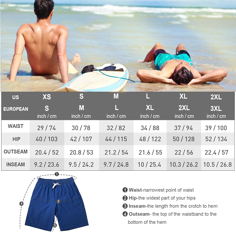 【تصميم بطانة مضغوطة】سراويل السباحة مع بطانة داخلية عالية المرونة، البطانة مع ديكورات منقوشة، مقاومة للاهتراء وقوية للغاية، قصة ثلاثية الأبعاد، بطانة 9 بوصات، يمكنك الاستمتاع بالشاطئ مع تجنب الاحتكاك والإحراج من التصاق الملابس إلى الجلد.