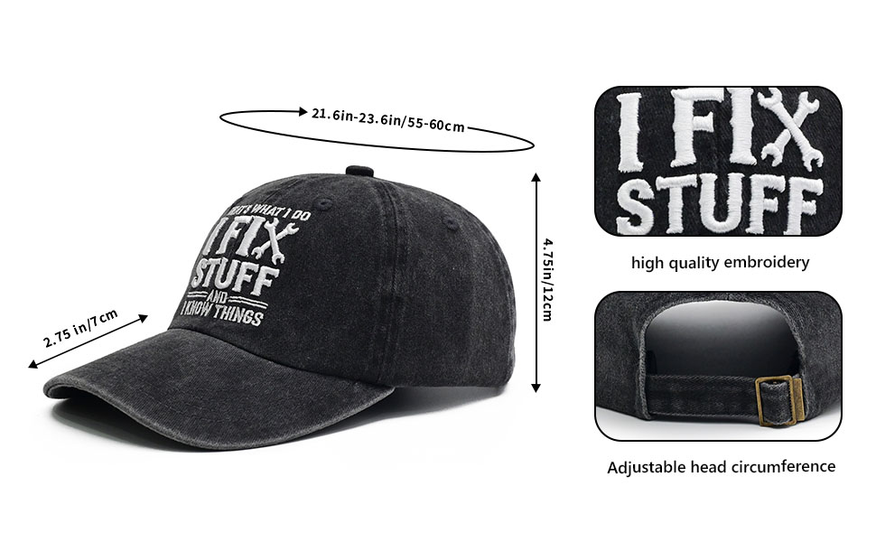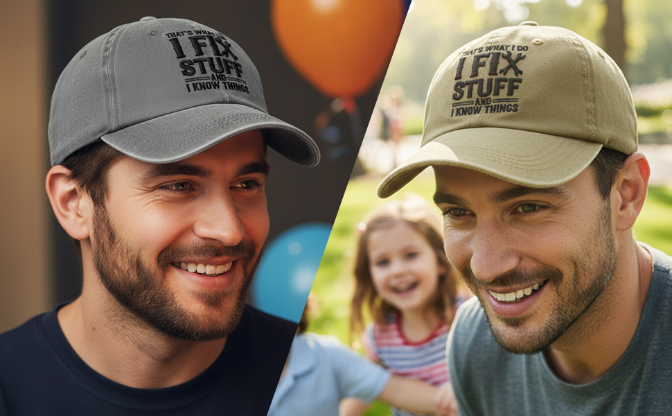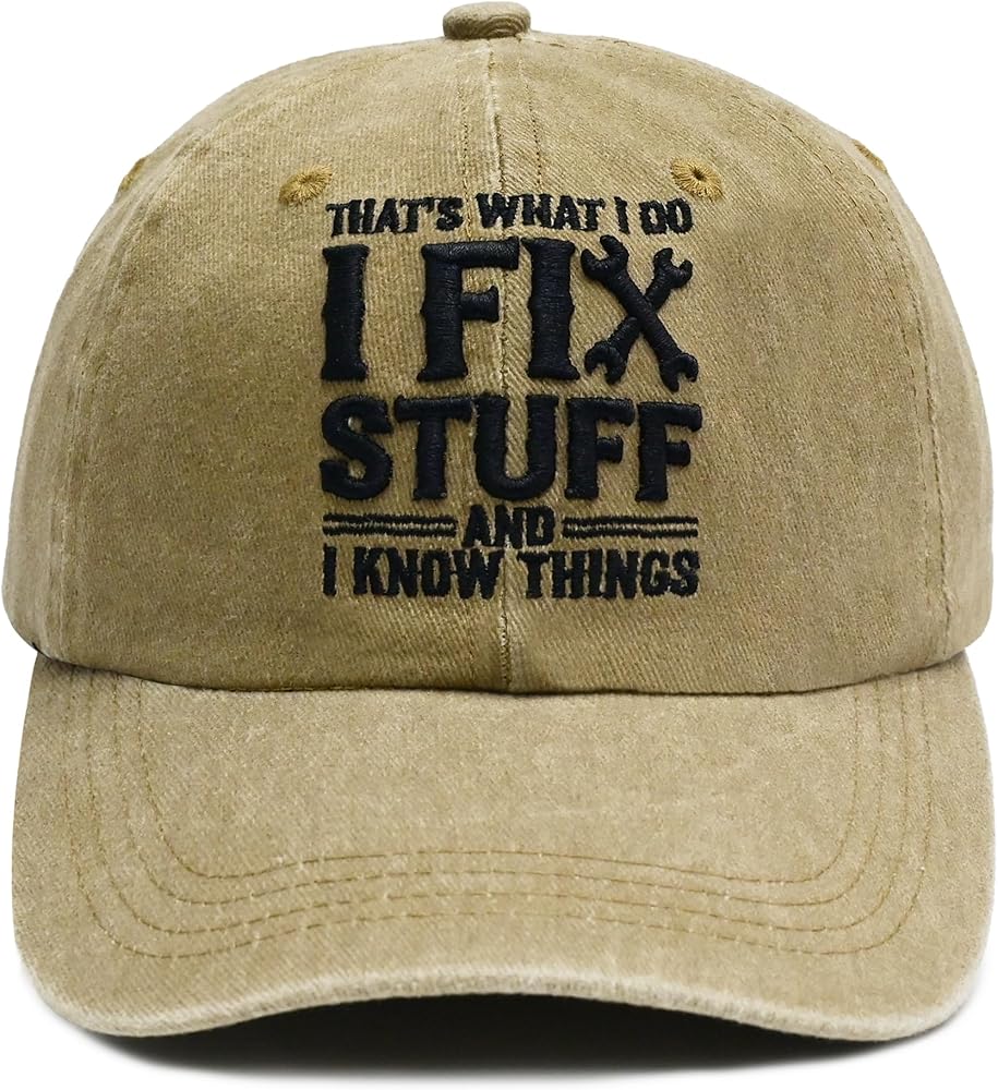 هدية فريدة للأب: الجزء الأمامي من القبعة مطرز بعبارة "هذا ما أفعله، أصلح الأشياء وأعرف الأشياء"، مما يجعلها هدية مدروسة للآباء أو الأصدقاء أو الزملاء الذين يستمتعون بإصلاح الأشياء. مثالي لأعياد الميلاد وعيد الأب والعطلات الأخرى.