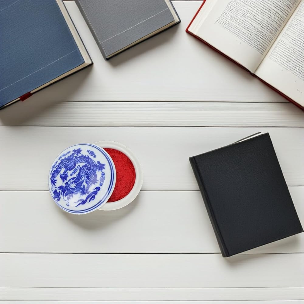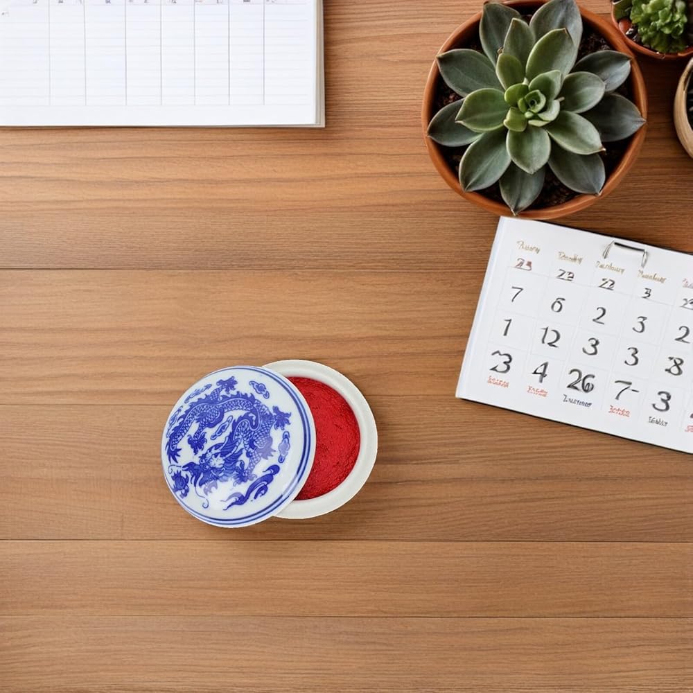 Chinese Yinni Pad Calligraphy Stamp Seal Painting Red Ink Paste Blue and White Porcelain Ink Pad Sealing Box for Name Chop Painting Supplies With Smooth Surface, It Will Be More , You Just Need to with Wet Cloth