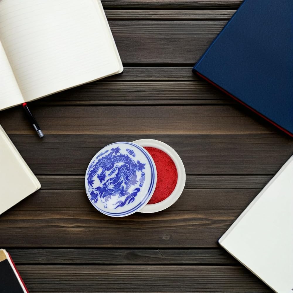 Chinese Yinni Pad Calligraphy Stamp Seal Painting Red Ink Paste Blue and White Porcelain Ink Pad Sealing Box for Name Chop Painting Supplies