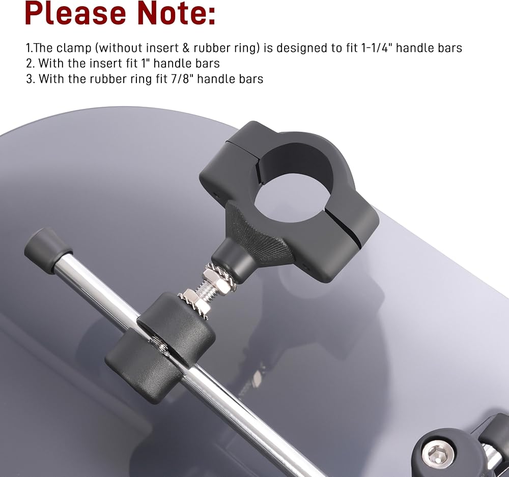 - يرجى ملاحظة: المشبك (بدون حشوة) مصمم ليناسب قضبان المقبض مقاس 1 بوصة، وسوف يناسب شريط المقبض 7/8 بوصة مع الحشوات.