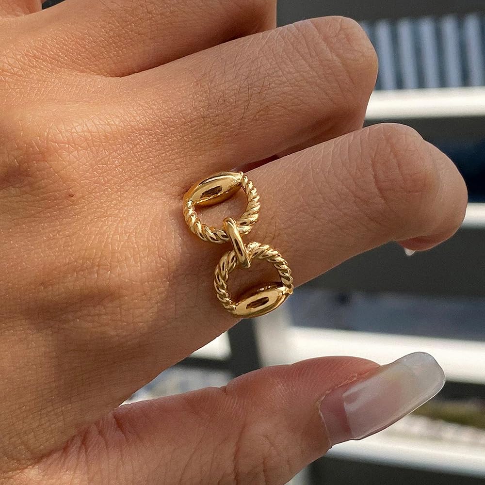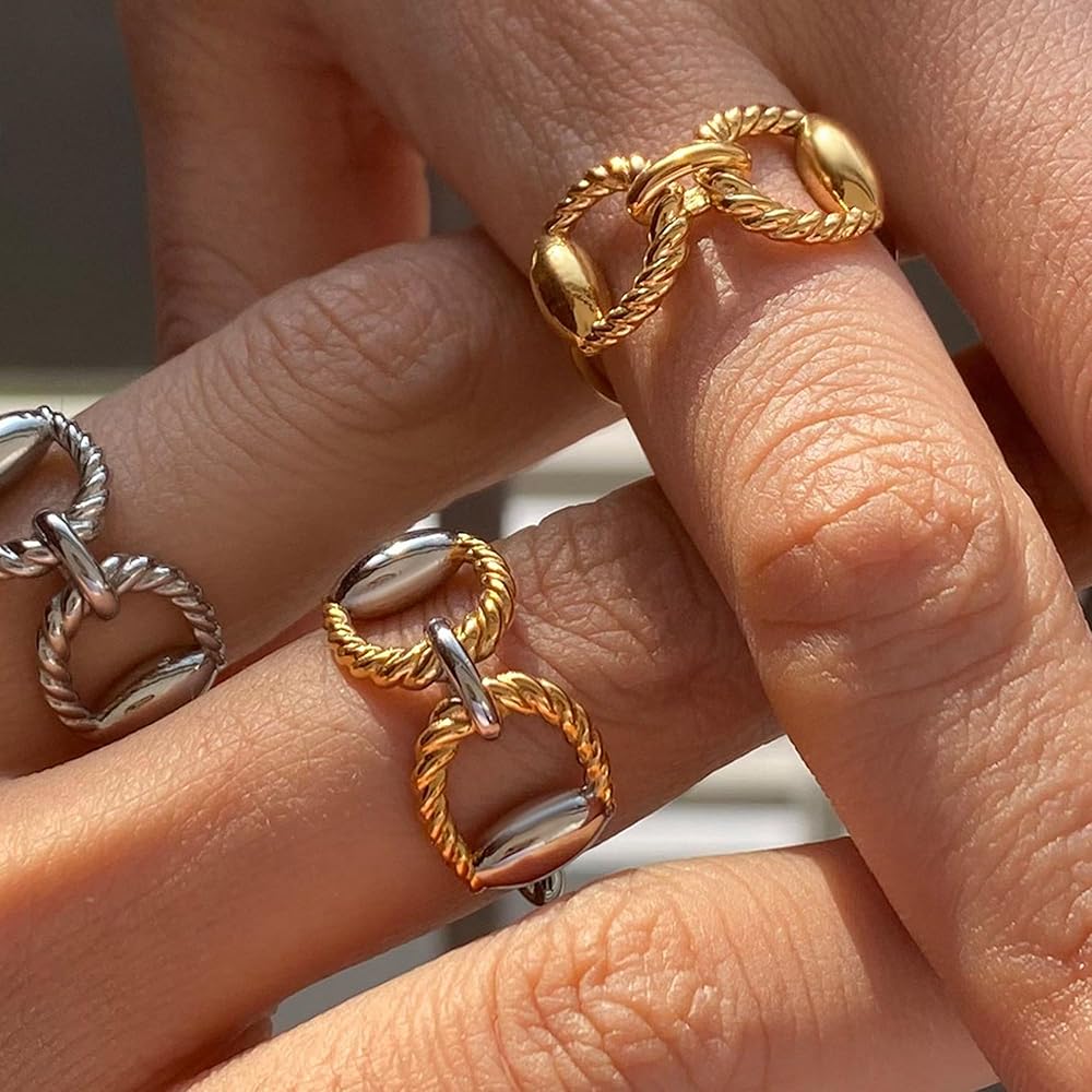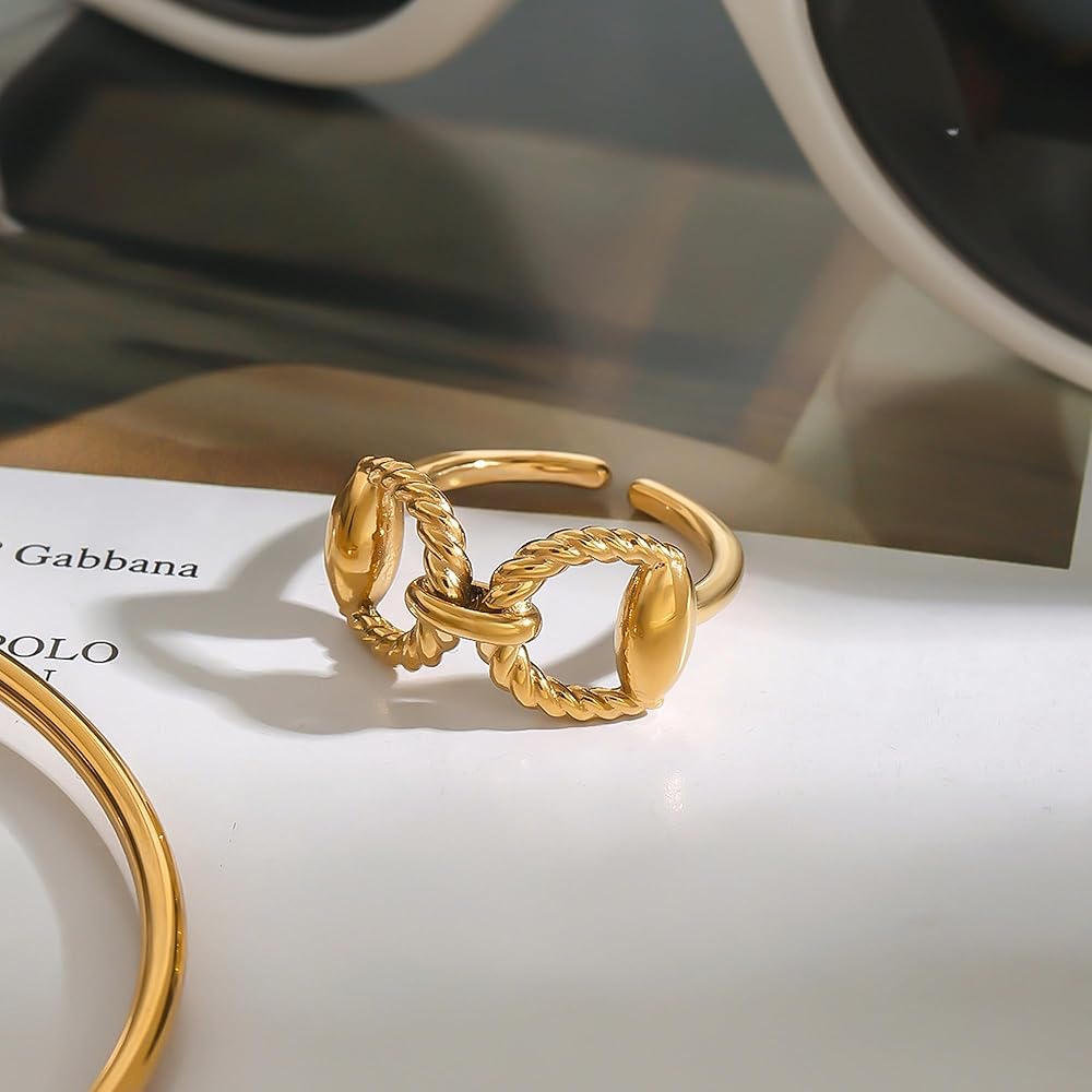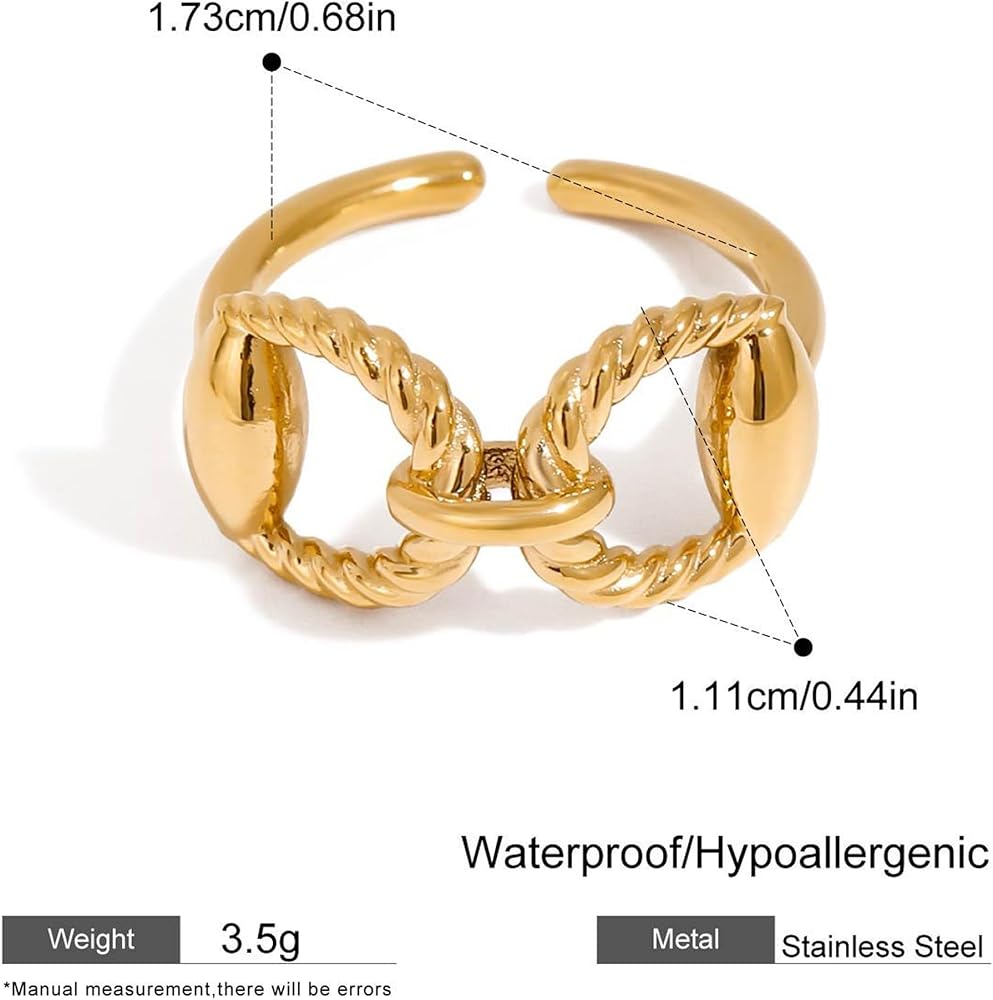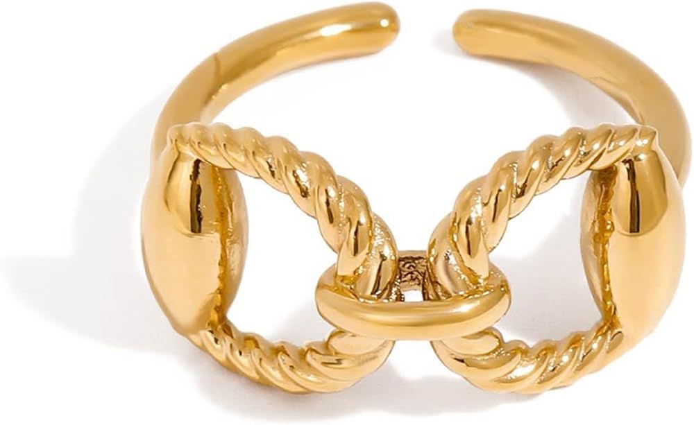 RAUCHBE Chunky Gold Horse Bit Rings for Women Vintage Statement Rings Adjustable Open Ring Non Tarnish Jewelry