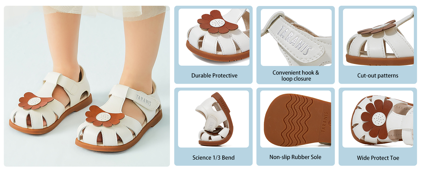 مريح ولطيف: صنادل للفتيات الصغيرات، نعل داخلي ناعم ومريح من البولي يوريثان، نعل خارجي مطاطي متين ومضاد للانزلاق، مثالي للزاحفين والرضع والمشي لأول مرة والأطفال الصغار ذوي الخبرة.