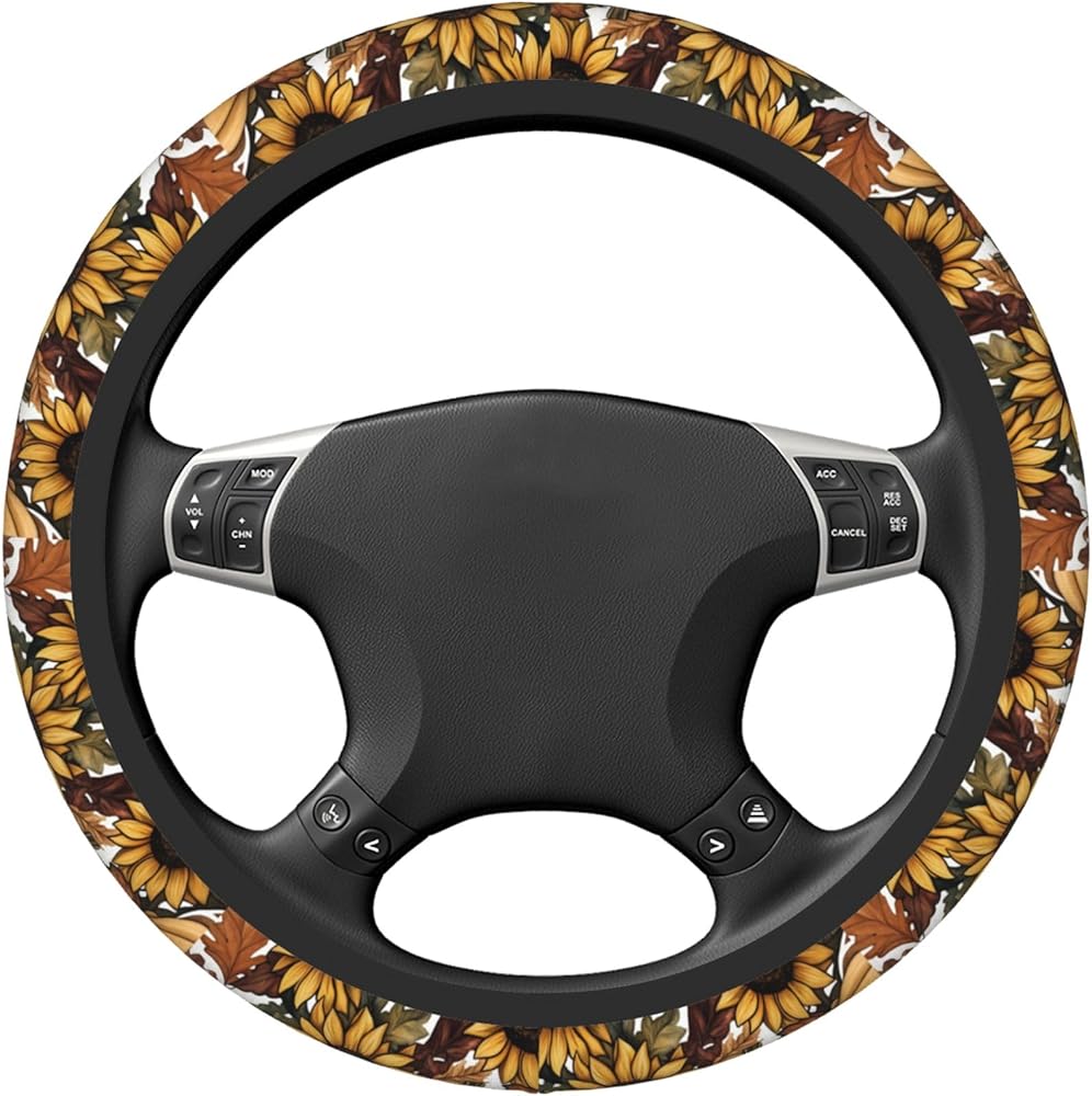 - تصميم أنيق: نمط عباد الشمس الجميل مع أوراق الخريف يخلق جمالاً جذابًا يضيء الجزء الداخلي لأي سيارة