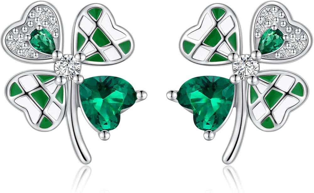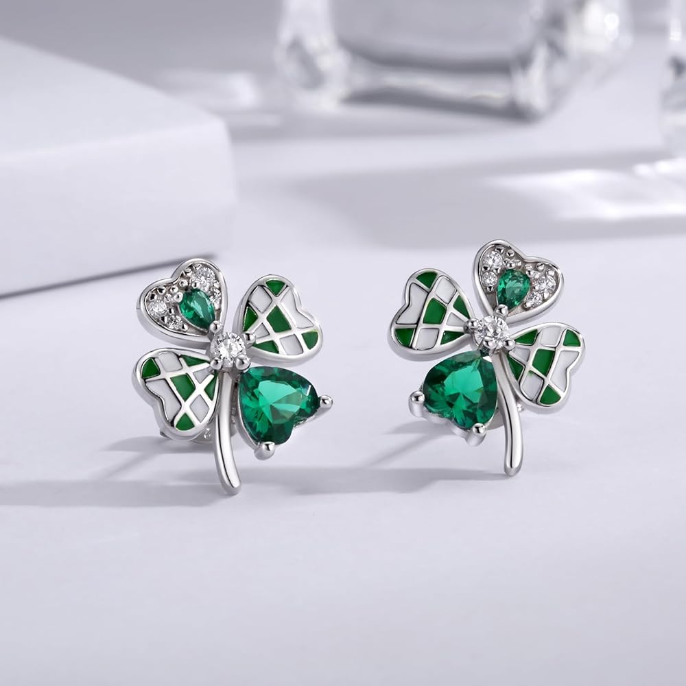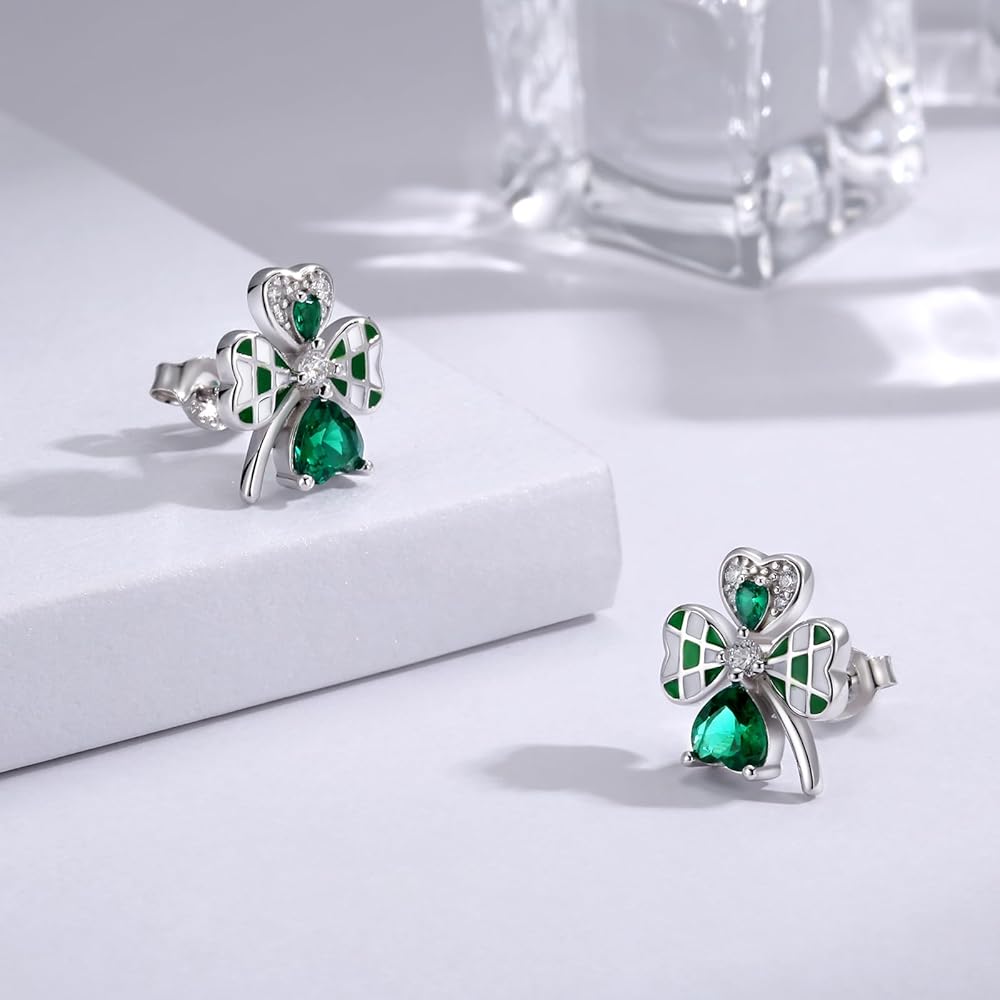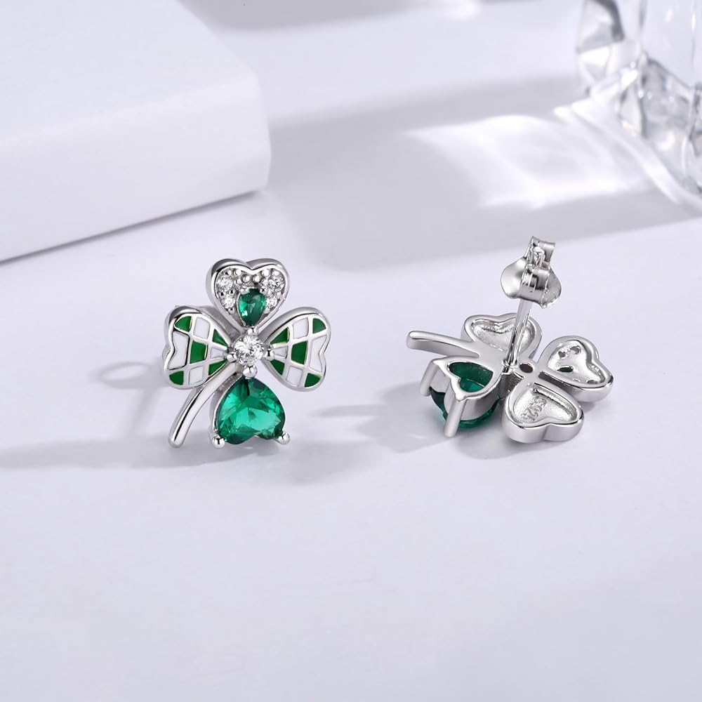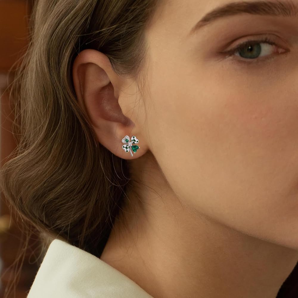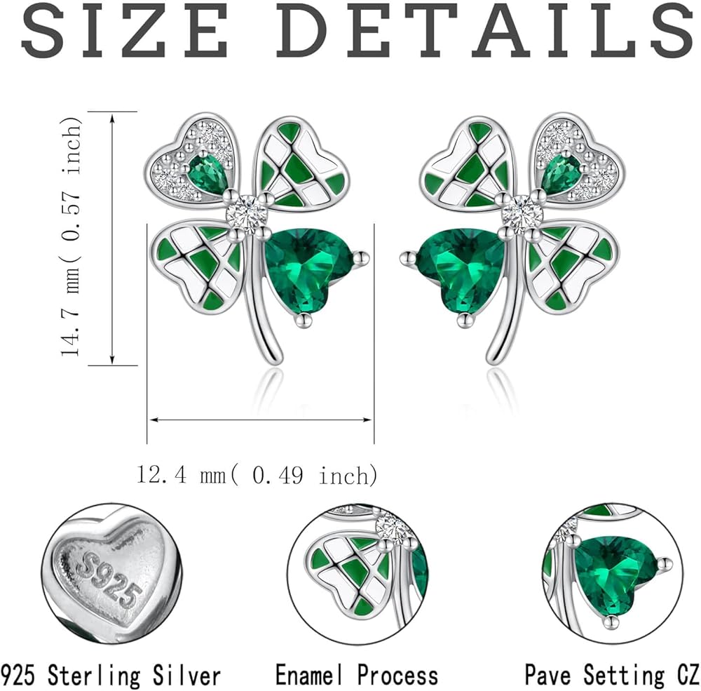 Safe for sensitive skins: The clover earrings made of 925 sterling silver and vivid green cubic zirconia, offering exceptional sparkle and clarity. Tarnish resistant, Nickel-free, Lead-free, Cadmium-free. Hypoallergenic and skin-friendly.