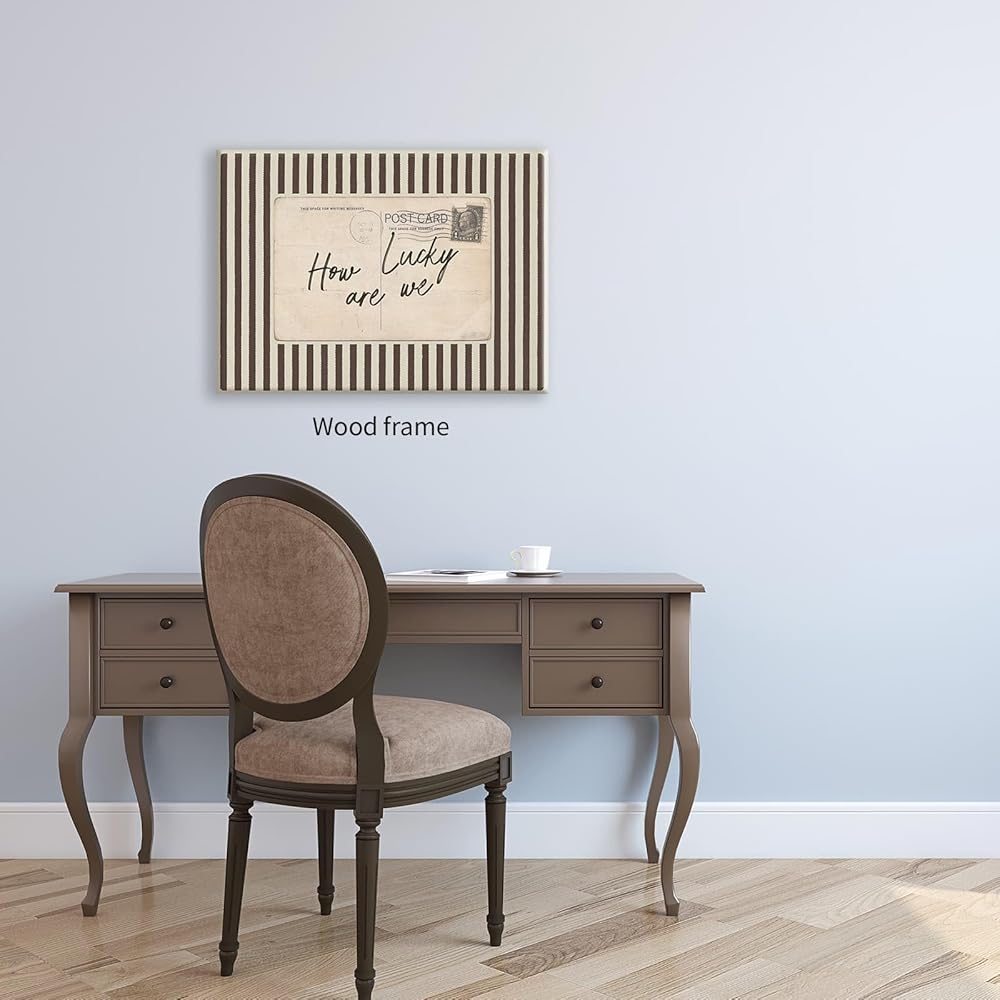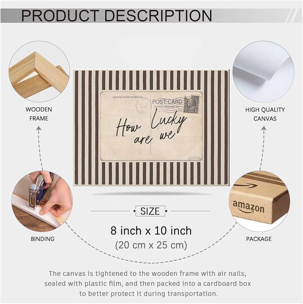مجموعة متنوعة من المقاسات وخيارين أنيقين وجاهزين للتعليق، تتوفر هذه اللوحة الفنية الجدارية القماشية "How Lucky Are We" بأحجام 8x10، و11x14، و12x16، و16x24، و20x30، و24x36 بوصة. اختر من بين نمطين جاهزين للتعليق: إطار ملفوف لإضفاء طابع كلاسيكي، أو إطار ألومنيوم أسود (ألومنيوم أسود حول إطار خشبي) لإضفاء مظهر أنيق ومعاصر.