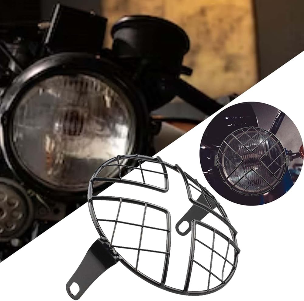 This motorcycle headlight guard is constructed from durable metal material offering strong hardness and reliable performance. It serves to protect your front headlight from breaking and scratching while adding decorative appeal to your motorcycle. The direct replacement design allows for straightforward installation using existing mounting holes without requiring special instructions.