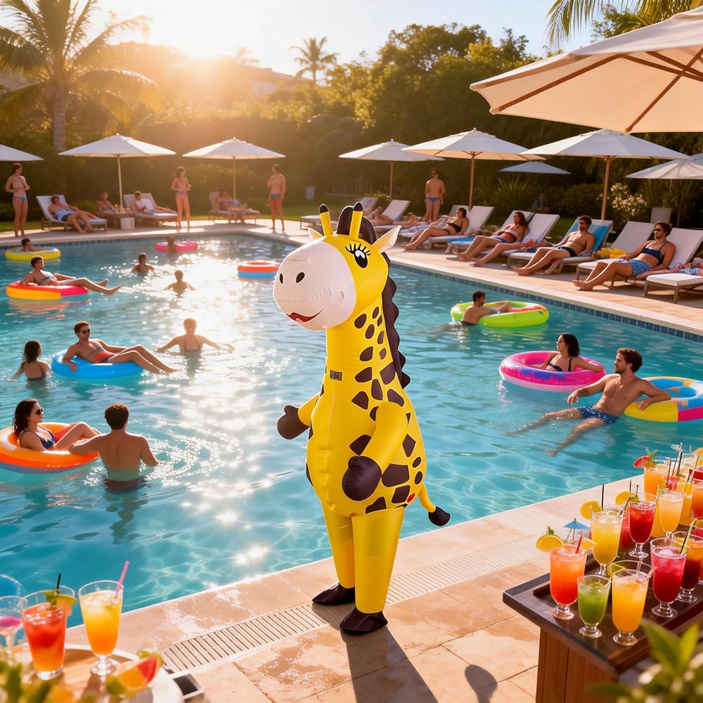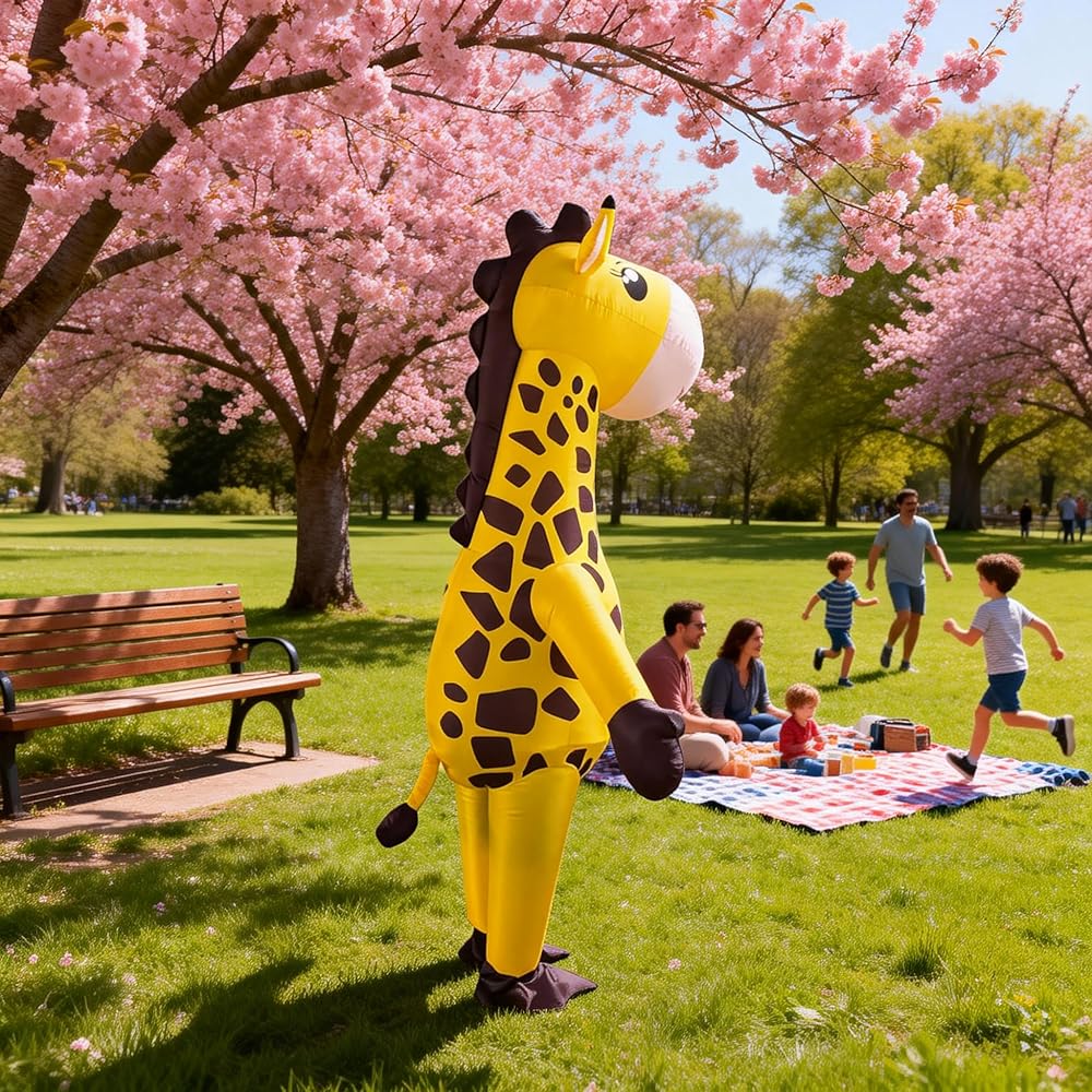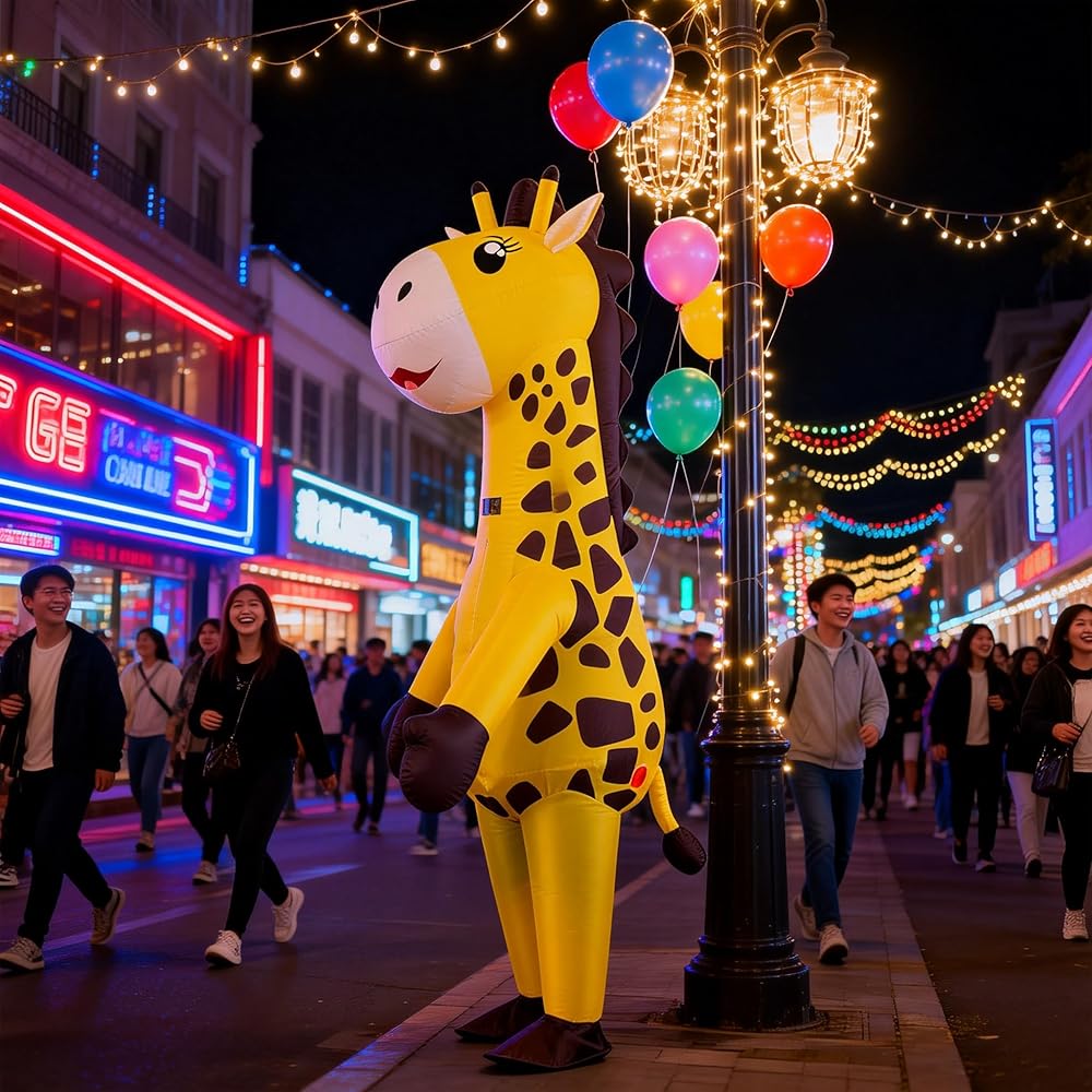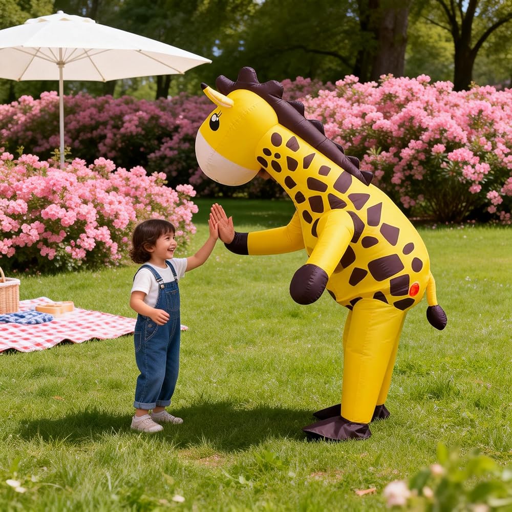زي الزرافة القابل للنفخ - بذلة لكامل الجسم على شكل حيوان للهالوين، قماش مسامي، خفيف الوزن ومرن للحفلات التنكرية، المسيرات
