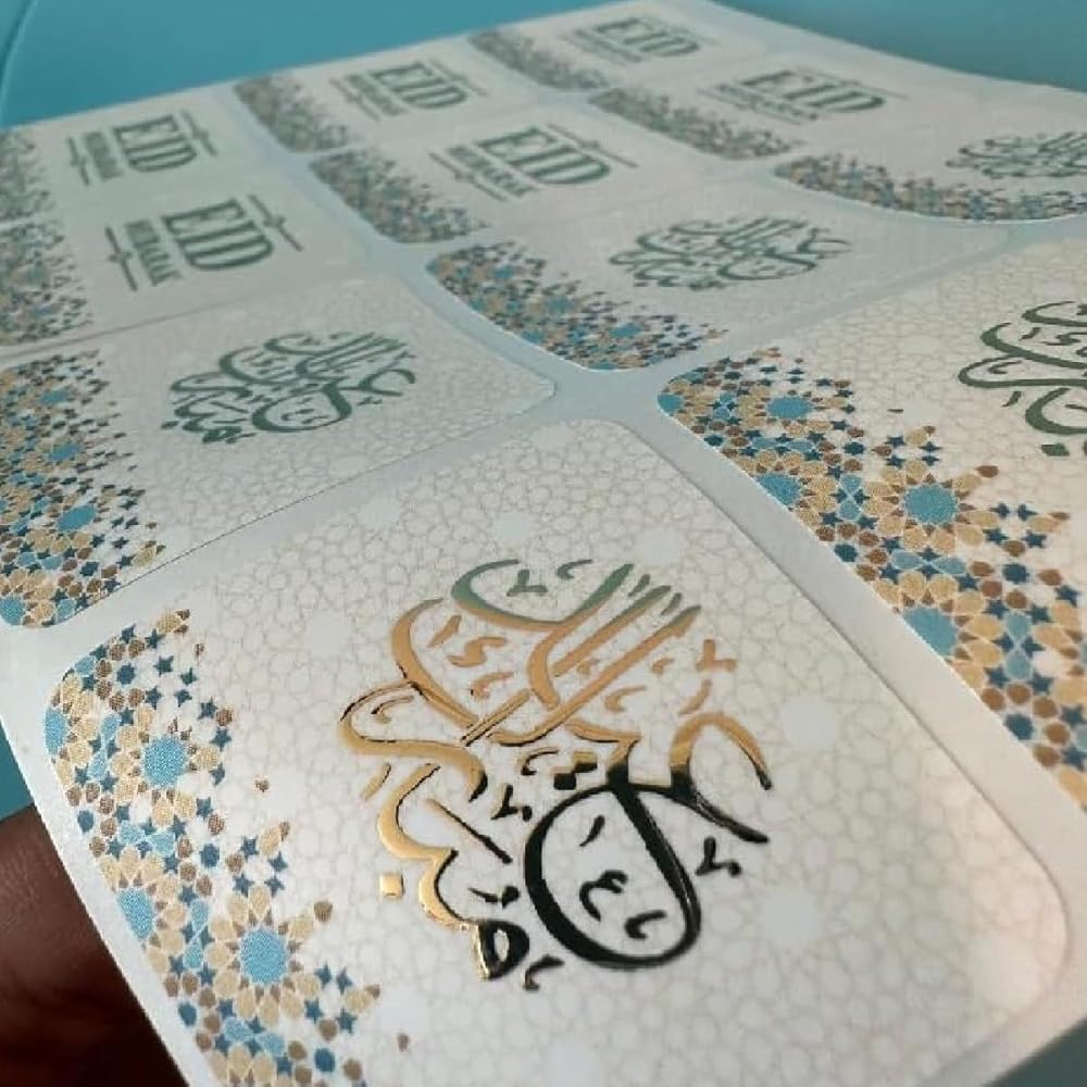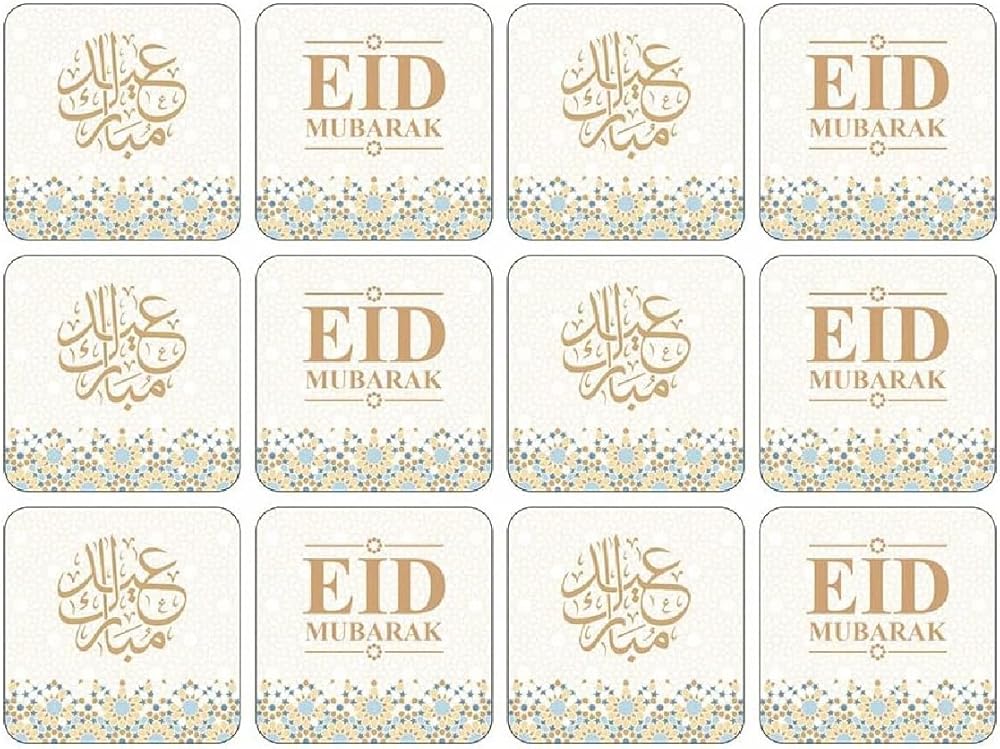 Celebrate the joy and blessings of Eid with this beautifully designed Eid Mubarak Sticker Set, perfect for adding a festive and elegant touch to all your decorations and gift packaging. This complete set includes 2 matching sticker designs with 12 stickers in each pack, giving you a total of 24 high-quality Eid Mubarak stickers to meet all your party decoration and crafting needs. Each sticker measures approximately 4.5 cm x 4.5 cm, making them ideal for sealing envelopes, decorating gift bags, treat boxes, greeting cards, and party favors. Featuring stylish Islamic calligraphy with a premium gold geometric pattern border, these Eid Mubarak stickers create a warm, joyful, and sophisticated atmosphere for Eid al-Fitr and Eid al-Adha celebrations. Whether you are hosting a family gathering, classroom celebration, mosque event, or festive party, these decorative stickers help enhance the spirit of the occasion. Designed for easy peel-and-stick convenience, simply remove the sticker from the backing paper and apply it to any smooth, clean, and dry surface such as paper, plastic, glass, gift wrap, and boxes. The strong adhesive ensures the stickers stay securely in place while remaining easy to remove without leaving residue in most cases. Perfect for kids and adults alike, these Eid Mubarak stickers are great for DIY crafts, scrapbooking, party decorations, holiday gift wrapping, and festive activities. Add a special finishing touch to your Eid gifts and decorations and make every celebration memorable with this elegant and versatile Eid Mubarak sticker set.
