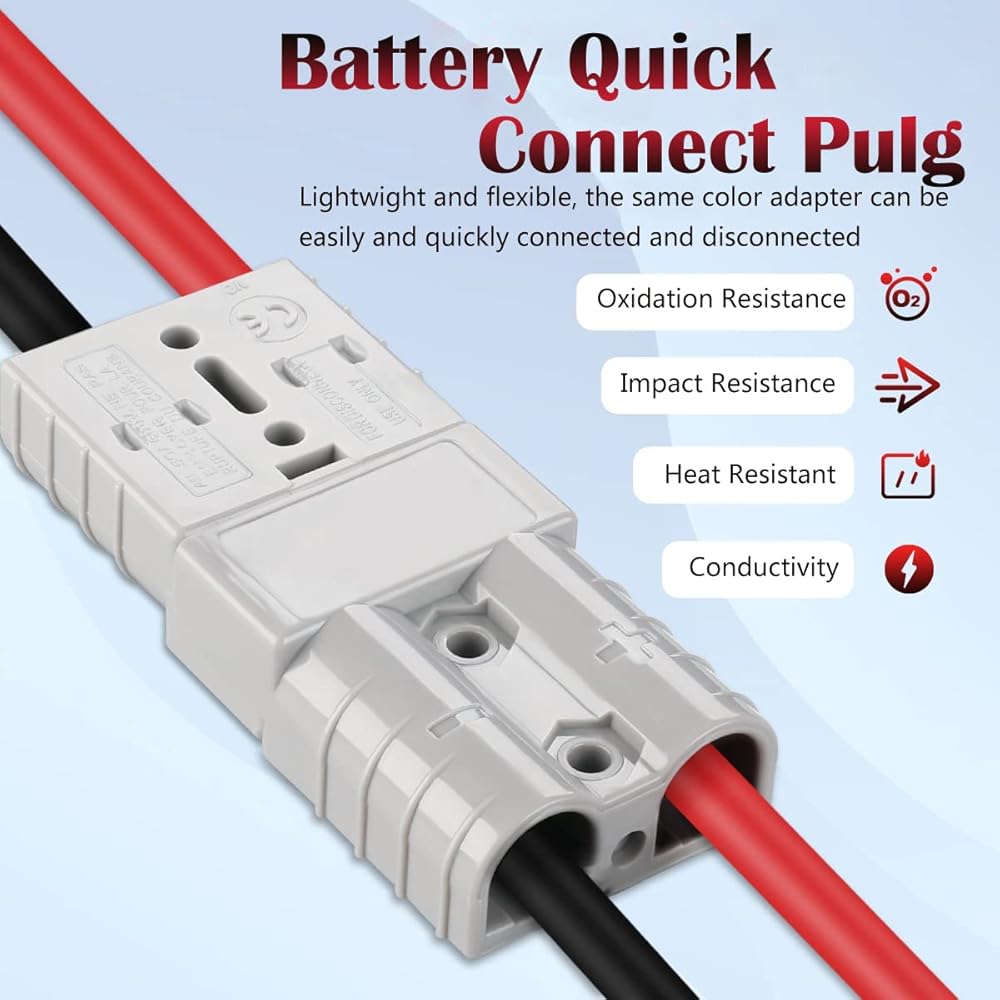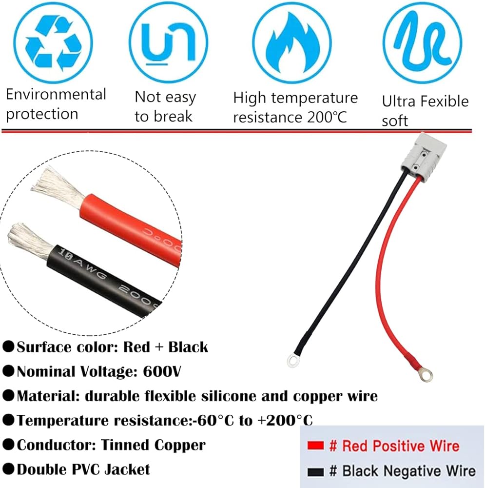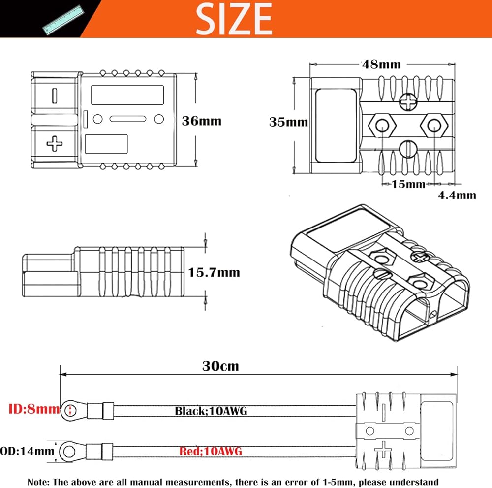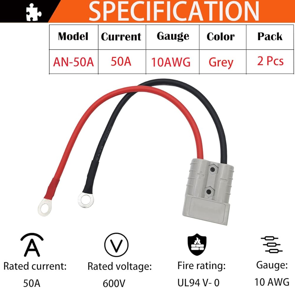 بطارية 50 أمبير توصيل سريع لفصل الموصل مع كابل موصل بطارية حلقة دائرية 10AWG، للرافعة الشوكية الكهربائية، والمنزل المتنقل، والجرارات (قطعتان)
