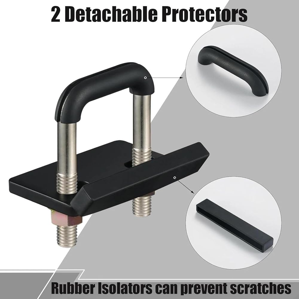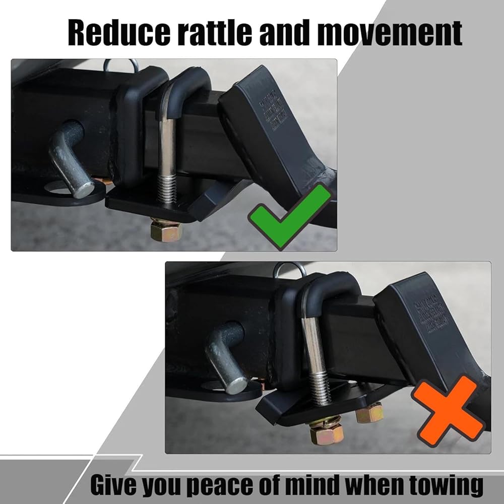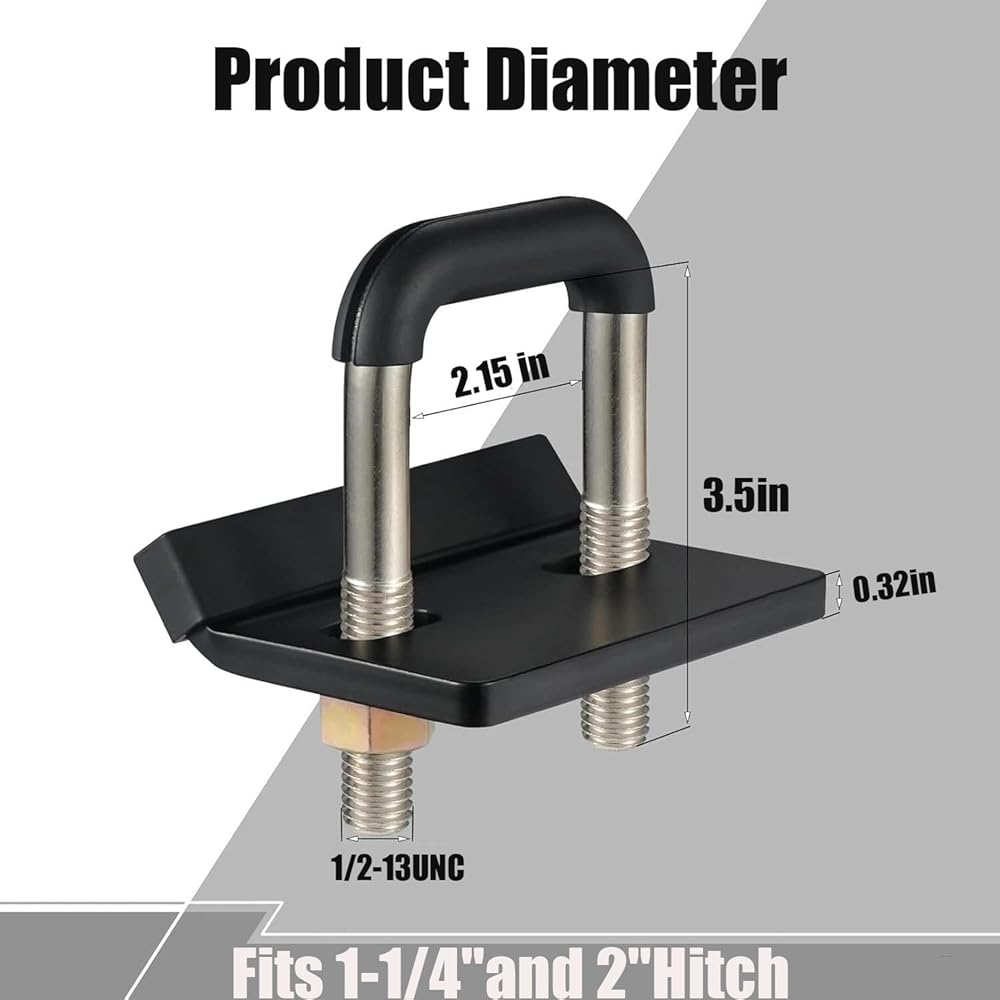 Eliminate unwanted movement and rattling in your trailer hitch with this heavy-duty anti-rattle stabilizer. Compatible with both 1-1/4" and 2" receiver hitches, this robust stabilizer features a powder-coated plate and nickel-plated steel U-bolt construction for lasting durability. The innovative design includes rubber isolators that help reduce noise and vibration during transit. With precise dimensions of 3.5" height, 2.15" width, and 0.32" thickness, this stabilizer provides a secure fit. The complete kit includes everything needed for installation: a powder-coated plate, nickel-plating steel U-bolt, rubber isolators, zinc-plated flat washers, spring washers, and nuts. The 1/2-13UNC thread specification ensures proper fitment and reliable performance. This stabilizer is an essential accessory for anyone looking to enhance their towing experience by reducing play and movement between the hitch and receiver.