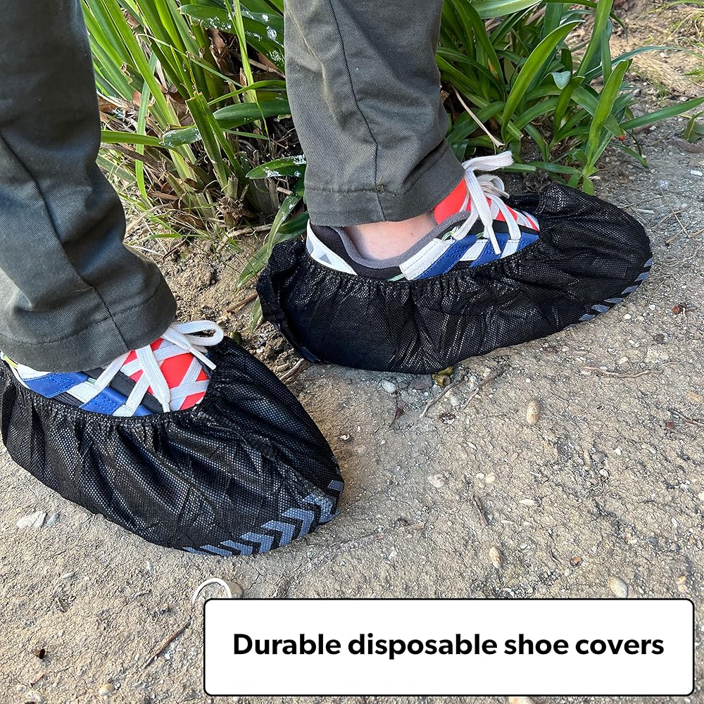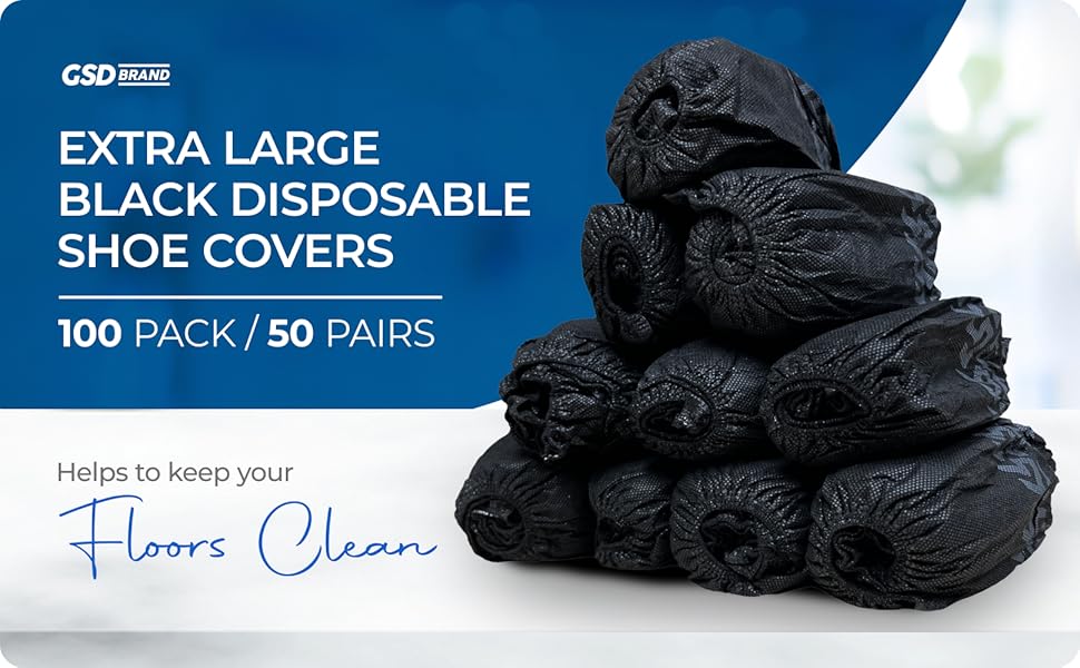 100 عبوة من أغطية الأحذية السوداء الكبيرة جدًا للاستعمال مرة واحدة. أغطية أحذية داخلية غير قابلة للانزلاق وقابلة لإعادة الاستخدام. أحذية طويلة ذات مداس غير قابلة للانزلاق. يناسب مقاس الرجال الأمريكي 14 والنساء 16