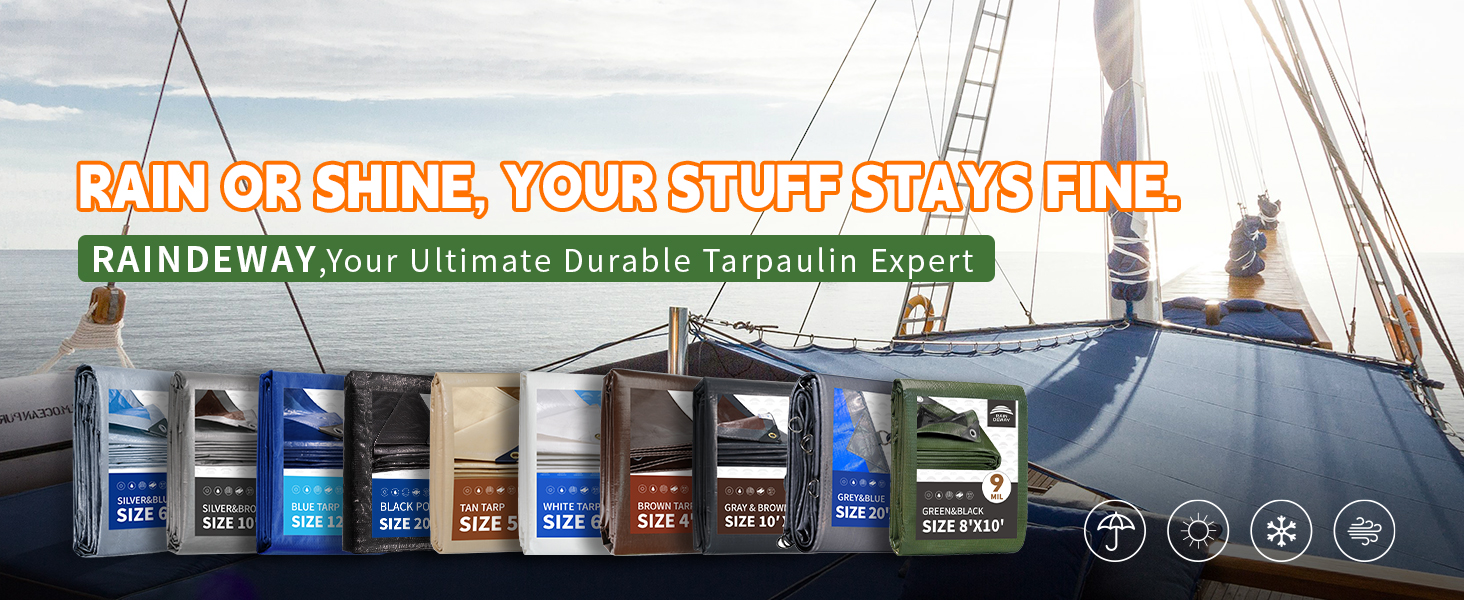 【الحجم النهائي + ترقية جديدة】حجم قماش RAINDEWAY هو الحجم الفعلي الذي يمكن استخدامه، وسوف تحصل على أغطية قماش القنب بالحجم الكامل. إذا كنت ترغب في الحصول على قماش مشمع سميك لطيف ومتين ومقاوم للماء، فإن مشمع RAINDEWAY هو خيار جيد