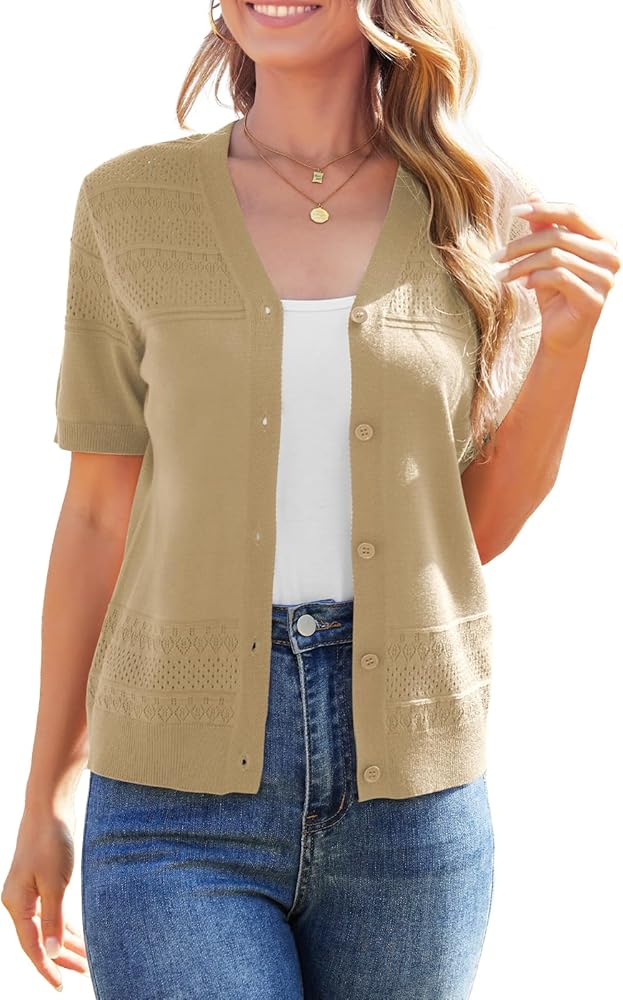 • المزايا: تتميز هذه السترة الصيفية خفيفة الوزن بأكمام قصيرة للسيدات بنمط كروشيه ساحر، وفتحة أزرار، وأكمام قصيرة جذابة، وسترة صوفية مفتوحة من الأمام. يضيف لك لمسة من الأناقة والأنوثة، مغرية للغاية