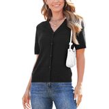 سترة صوفية بأكمام قصيرة للسيدات خفيفة الوزن صيفية من الكروشيه بأزرار سفلية ورقبة على شكل حرف V سترة محبوكة مجوفة in Kuwait