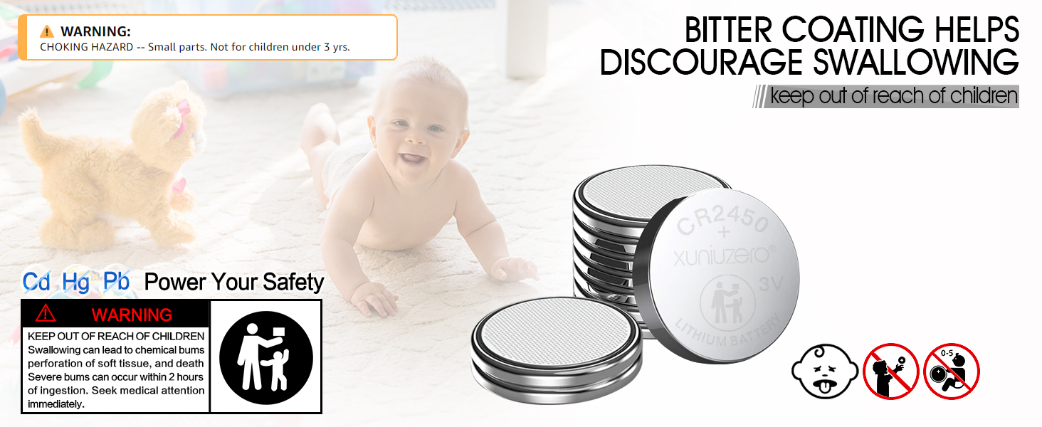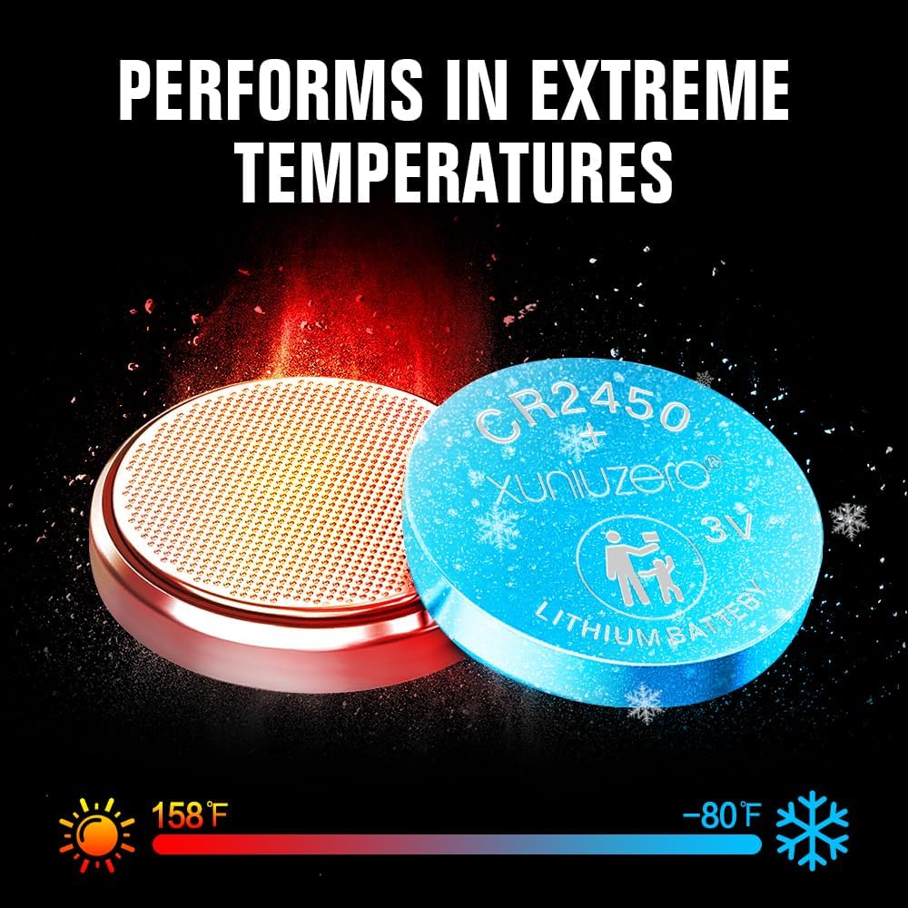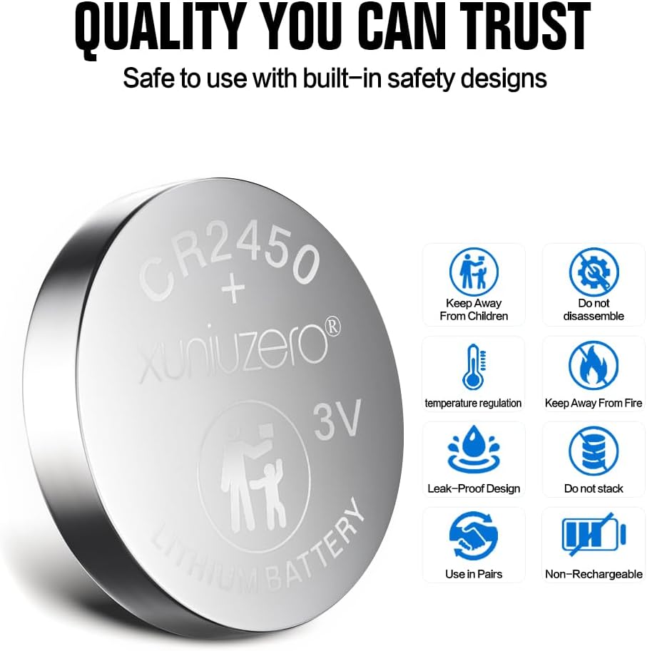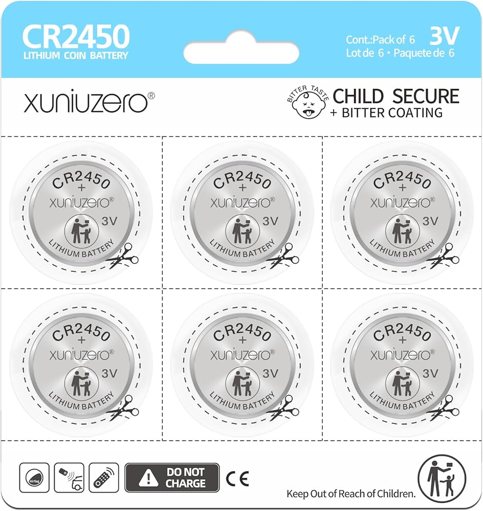 طاقة تدوم طويلاً - توفر بطارياتنا عالية الكثافة كثافة طاقة أعلى بنسبة 10% وقدرة أكبر بنسبة 20% من البطاريات العادية، مما يضمن أداءً فائقًا. تتميز بطاريات xuniuzero Lithium Coin CR2450 3V بطبقة مريرة غير سامة مطبقة على كلا الجانبين، للمساعدة في تثبيط البلع.