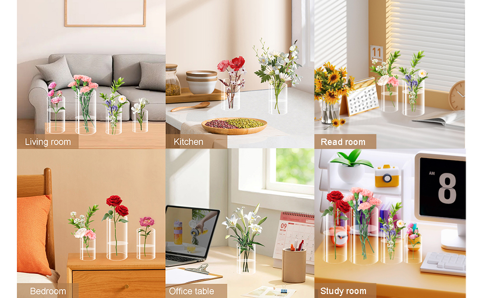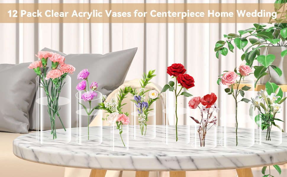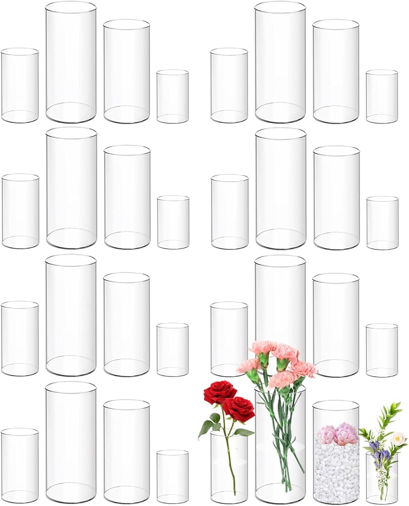 الكمية المناسبة: سوف تحصل على 12 عبوة من المزهريات الأكريليك الأسطوانية بأربعة ارتفاعات مختلفة: 4 بوصات، و6 بوصات، و8 بوصات، و10 بوصات، مع 3 عبوات لكل حجم. الكمية كبيرة بما يكفي لتلبية احتياجات زخارف الأزهار المختلفة.