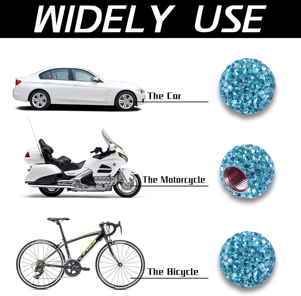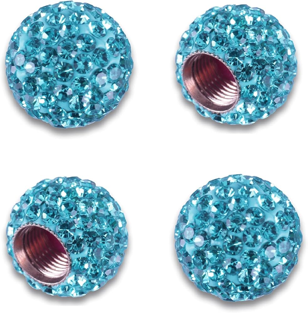 JUSTTOP 4 عبوات من أغطية جذع صمامات إطارات السيارات المصنوعة من حجر الراين الكريستالي، مناسبة عالميًا للسيارات والدراجات، باللون الأزرق الفاتح