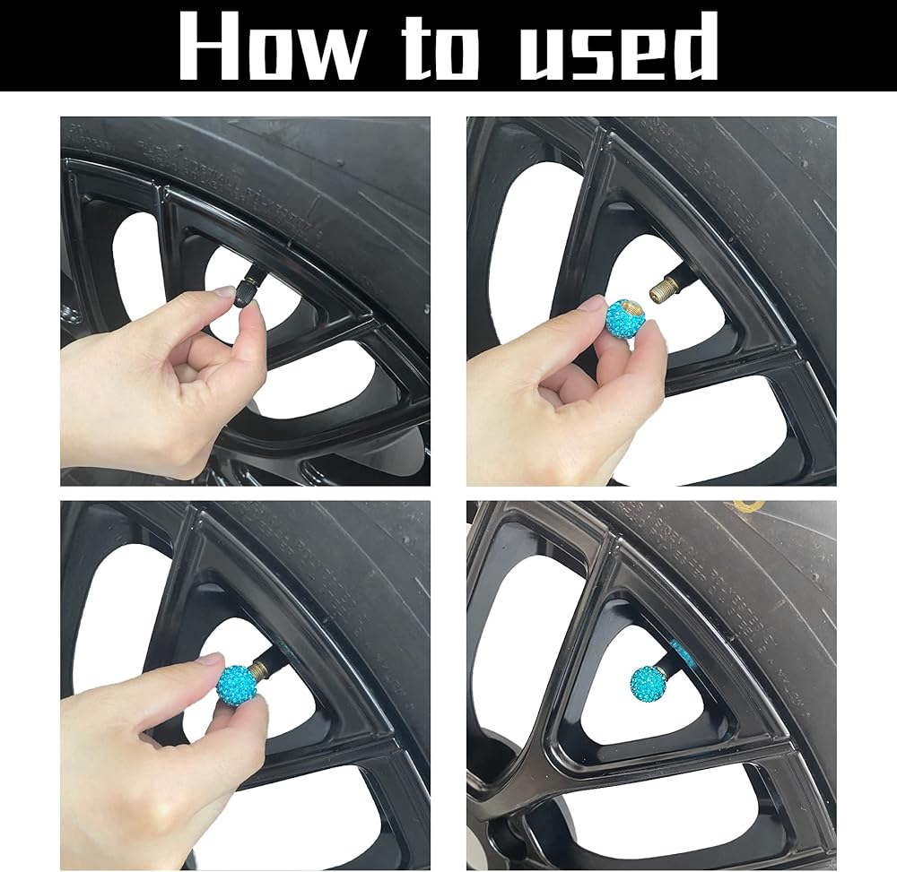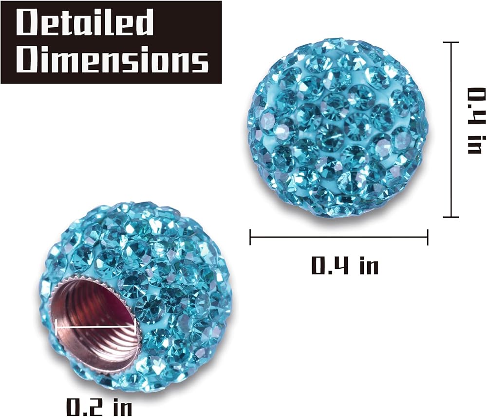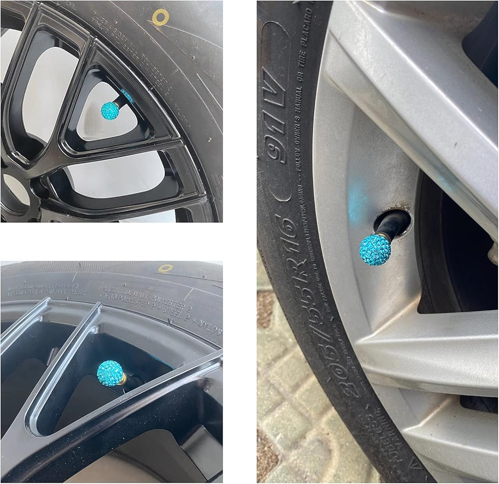• أغطية صمام الإطارات مصنوعة من حجر الراين الكريستالي اللامع عالي الجودة والمواد الأساسية النحاسية، بالداخل مع سدادات مطاطية، وختم معزز للمساعدة في منع تسرب الهواء.