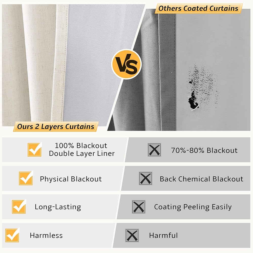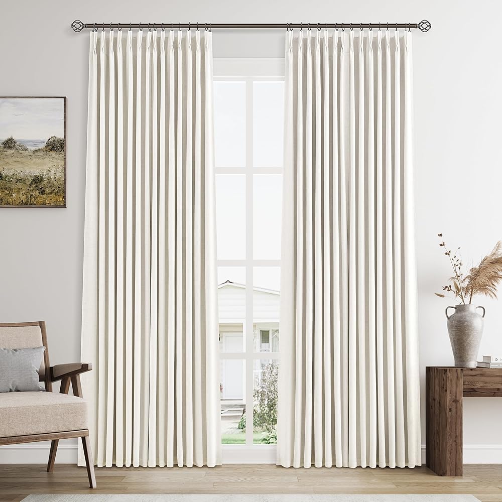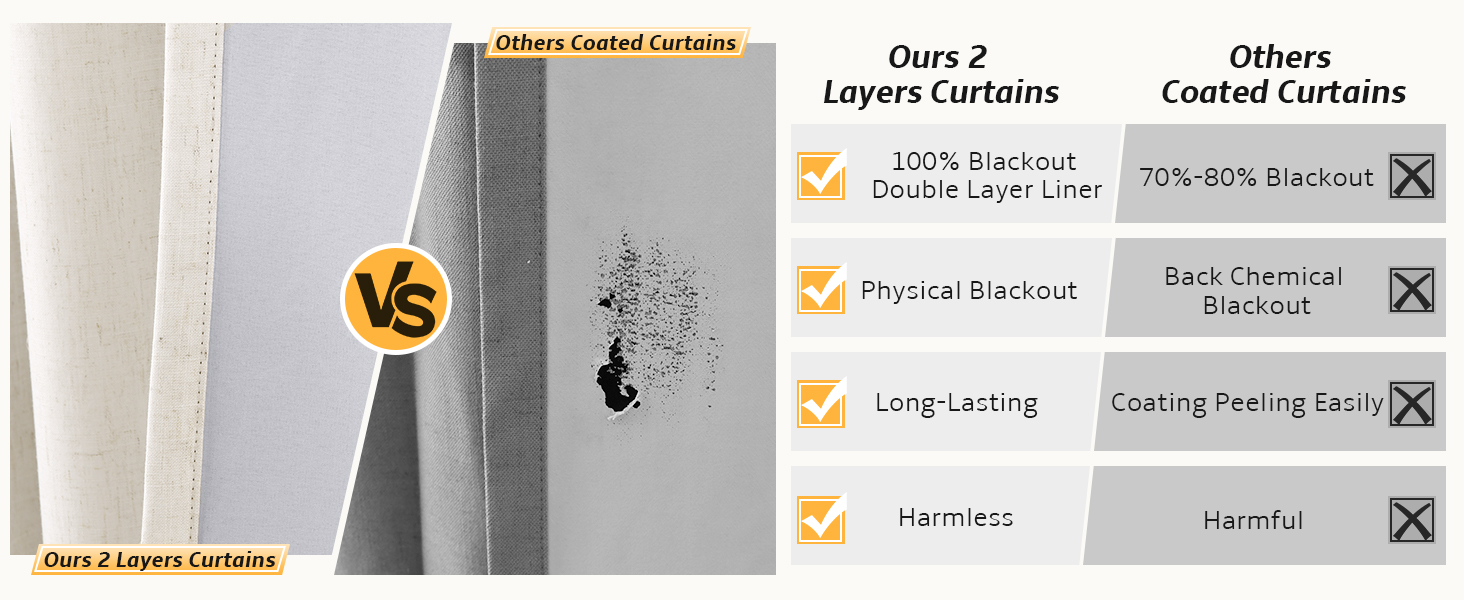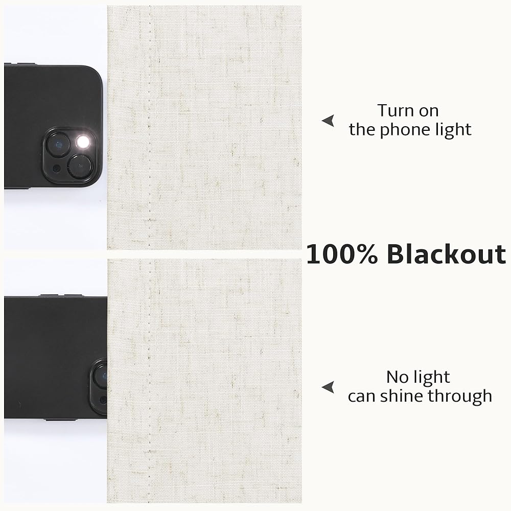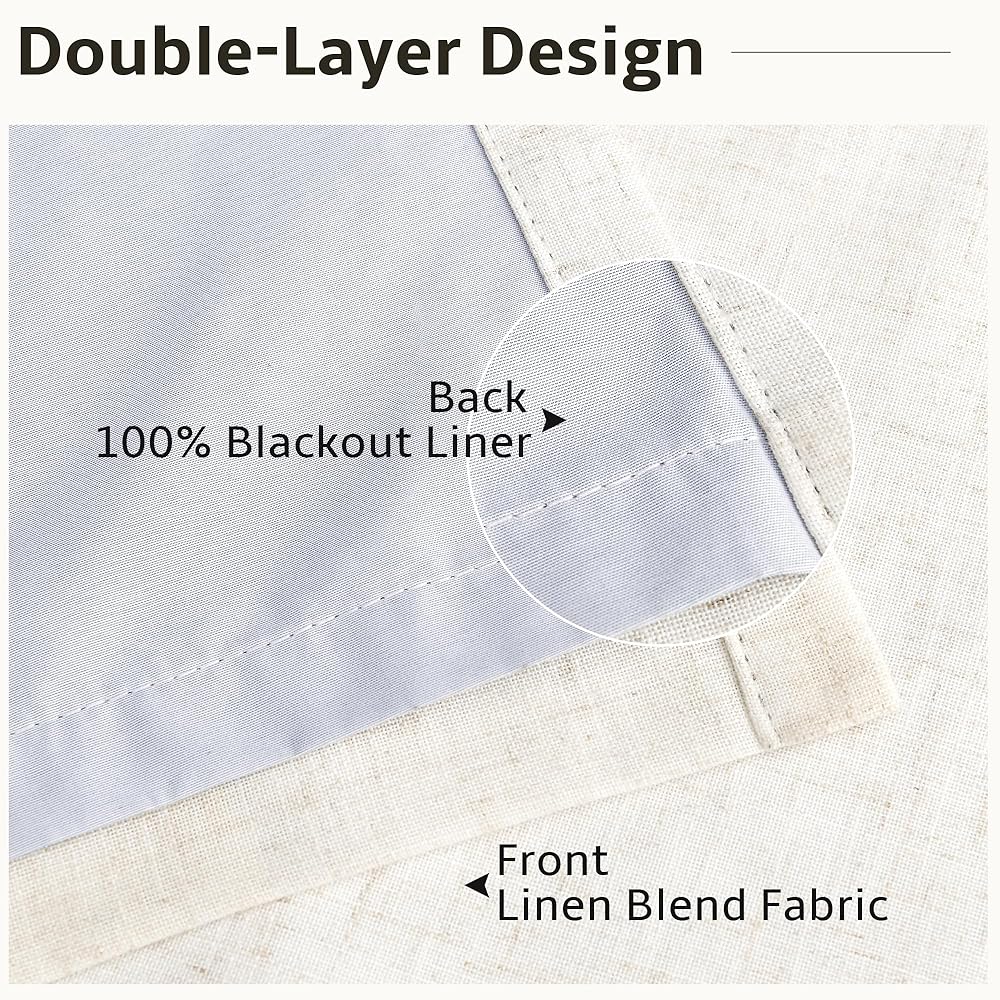 تصميم بطانة تعتيم كاملة: تتميز ستائرنا المطوية بهيكل مزدوج الطبقة مع مزيج خارجي من الكتان الناعم عالي الكثافة وبطانة داخلية كاملة التعتيم. يمزج هذا التصميم بذكاء بين ملمس الكتان الناعم وأداء التعتيم العملي. يخلق هذا المزيج مظهرًا رقيقًا مع إضافة نسيج غني إلى معالجة نافذتك. يجلب الكتان الطبيعي الدفء العضوي والرقة، مما يخلق جوًا هادئًا وأنيقًا من خلال العمق الملموس.