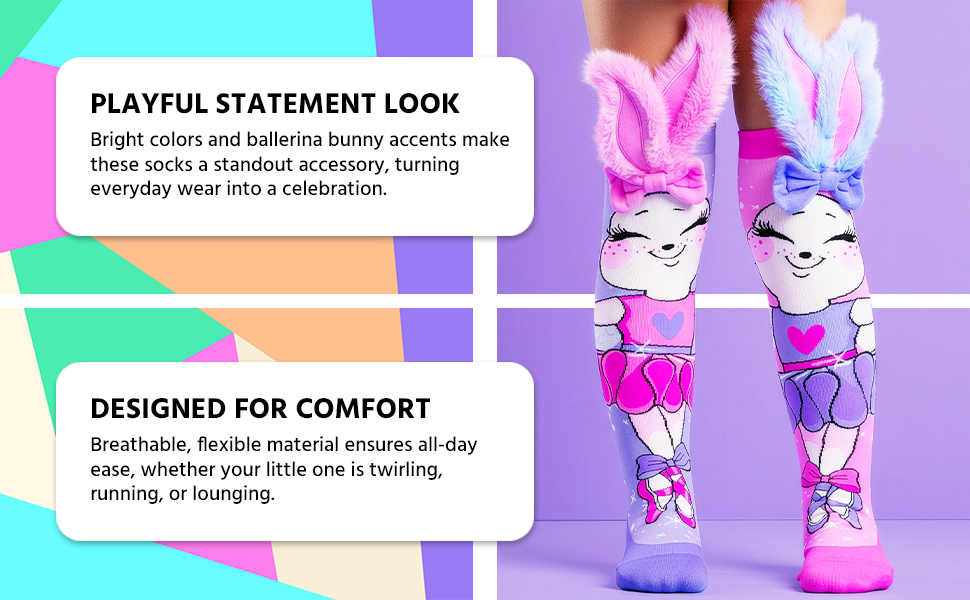 هدية مثالية لأي مناسبة - تعتبر جوارب Ballerina Bunny الممتعة هذه هدية مثالية لأعياد الميلاد أو العطلات أو أيام الجوارب المجنونة أو المناسبات المبتكرة أو حفلات الرقص أو هدايا حفلات الأطفال.