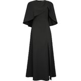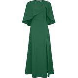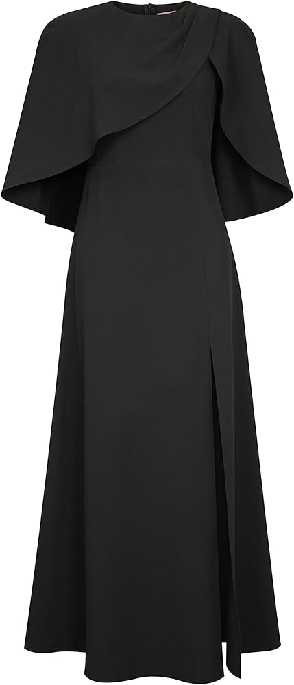 It's a maxi dress made of curpo and viscose blend fabric. Cape sleeves. Slit in bottom. Back center zip. Standard size S approx. length: 138 cm/ 54.3 inches; Plus size approx. length: 144 cm/ 56.7 inches. MATERIAL: 66% CUPRO 30% VISCOSE 4% SPANDEX. CARE: DRY CLEAN WASH SEPARATELY DO NOT BLEACH DO NOT TUMBLE DRY LOW IRON.