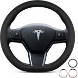 🚗 مناسب تمامًا لـ Tesla - تم تصميم غطاء عجلة القيادة هذا لطراز Tesla 3/Y خصيصًا لتغليف العجلة الأصلية بسلاسة، مما يضمن عدم التداخل مع الوسائد الهوائية أو أدوات التحكم مع الحفاظ على جمالية Tesla الأنيقة.