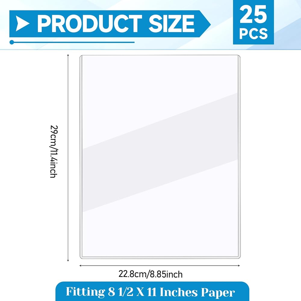Sufficient Quantity: You will receive 25 pieces of clear sheet protectors, fitting 8 1/2 x 11 inches paper, prints, photo or documents, large size and adequate quantity to suffice your daily usage and replacement demands, you can also share with others who need them. Never have to worry about running out of paper protector.