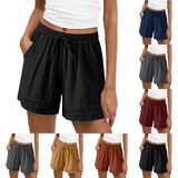 Linen Shorts for Women 2026 Summer Casual Beach Pants High Waist Drawstring Shorts with Pockets Fashion Clothing