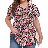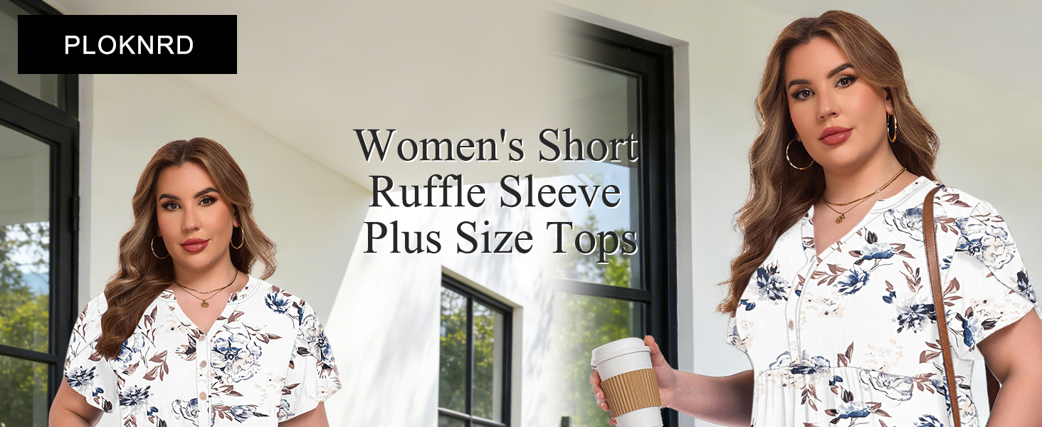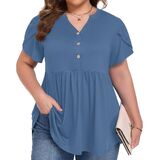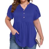 قمصان نسائية من PLOKNRD مقاس كبير وأكمام قصيرة مكشكشة من Henley، قمصان تونيك بأزرار وفتحة رقبة على شكل V، بلوزات كاجوال متأرجحة متدفقة وأنيقة in Kuwait