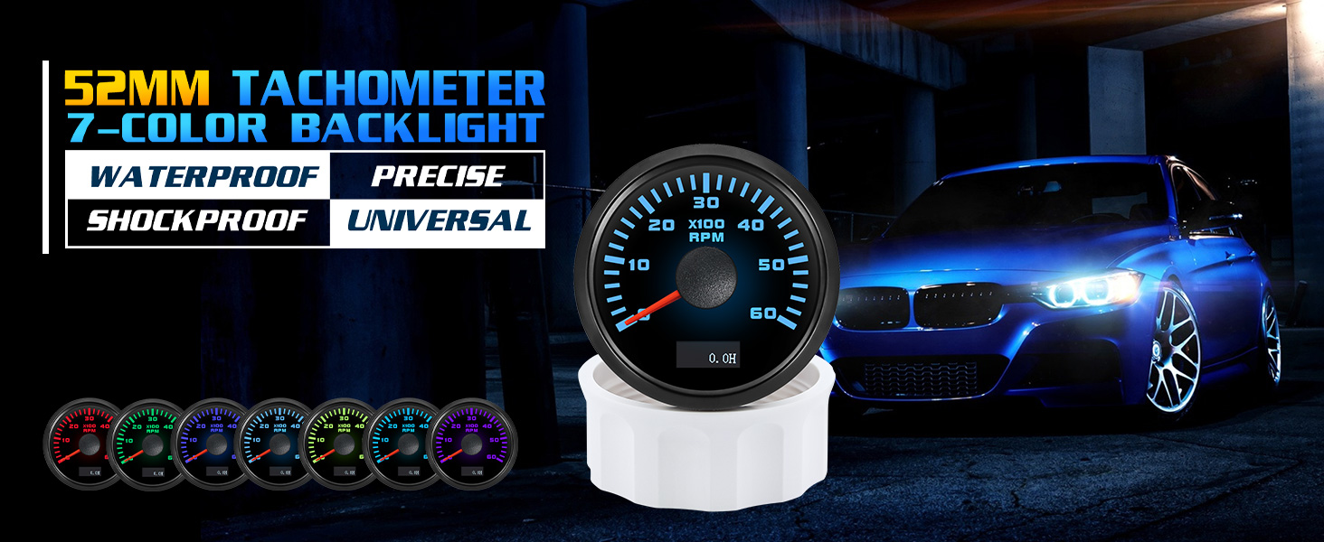 • 【إضاءة خلفية】7 ألوان: أحمر، أزرق سماوي، أزرق، زيتوني، أخضر، أرجواني، أبيض، يمكنك اختيار اللون الذي تفضله أو بيئة القيادة. مع إبرة حمراء وإضاءة خلفية ساطعة، سهلة القراءة في الليل أو من أي زاوية