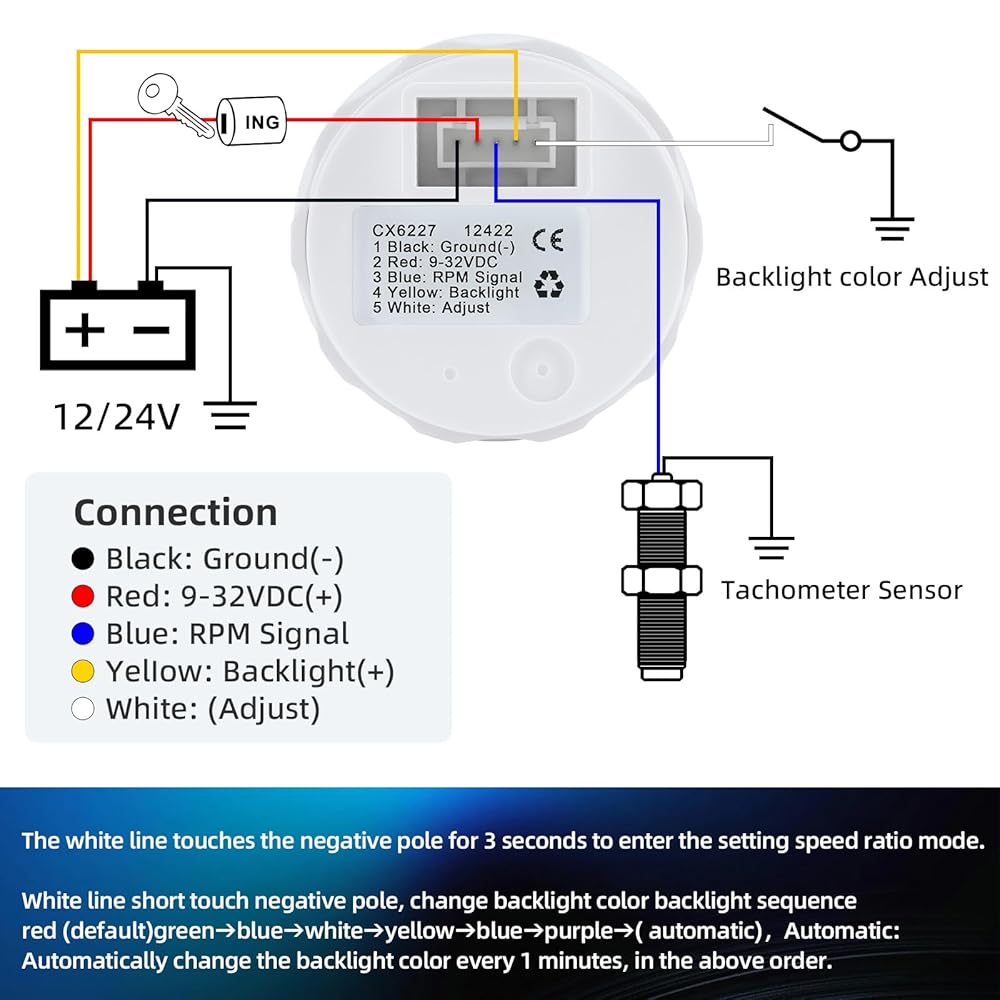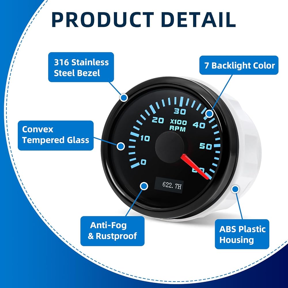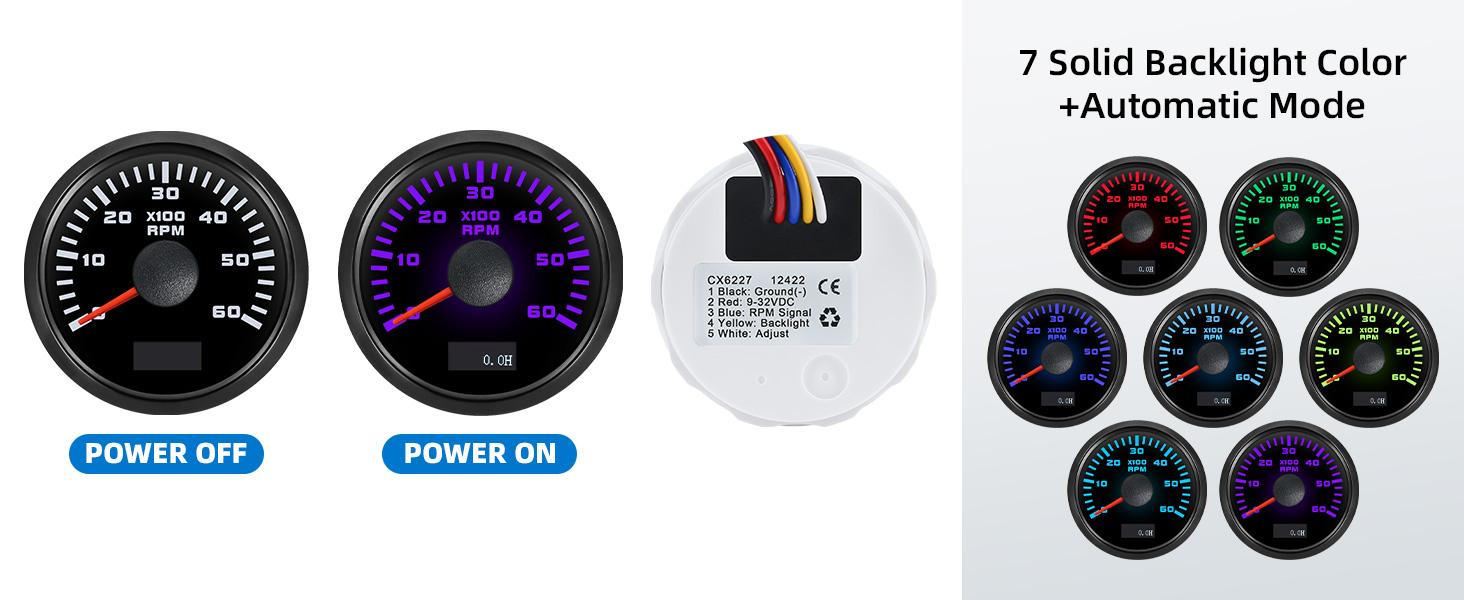 • 【العبوة】تتضمن مقياس سرعة الدوران، وحزام الأسلاك، وتعليمات التثبيت. يرجى ضبط نسبة السرعة المناسبة وفقًا لعدد الأسطوانات في سيارتك أو قاربك